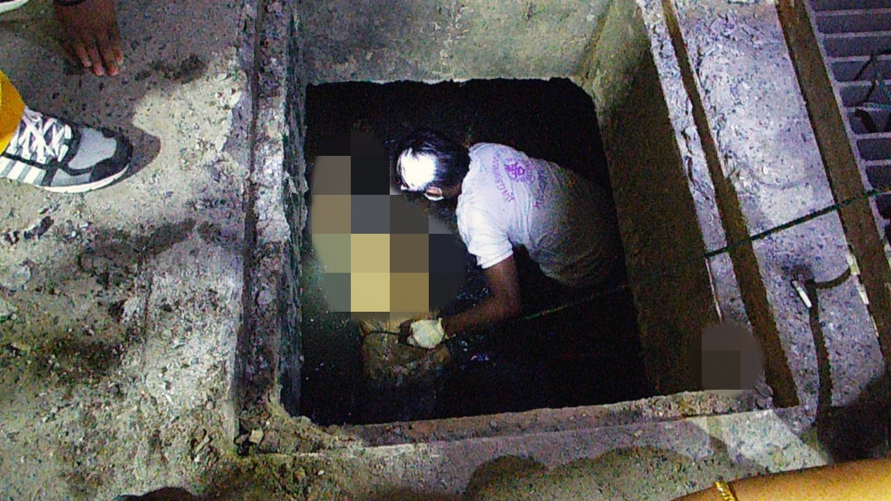 ที่เกิดเหตุอยู่ริมถนนสายหลักขาเข้าเมืองภูเก็ต มีชาวบ้านกำลังมุงดูเหตุการณ์เป็นจำนวนมาก ซึ่งเจ้าหน้าที่ต้องกั้นแนวเขต พบท่อระบายน้ำมีฝาตะแกรงเหล็กปิดอยู่ โดยมีกลิ่นเหม็นเน่าฟุ้งกระจายไปทั่ว จากนั้นหน่วยกู้ภัยมูลนิธิกุศลธรรมภูเก็ต ได้ใช้ไฟฉายส่องดูภายในท่อระบายน้ำ พบร่างคน สภาพไม่มีศีรษะ แช่อยู่ในน้ำ จึงใช้ชะแลงงัดเปิดตะแกรงเหล็กฝาท่อระบายน้ำออก