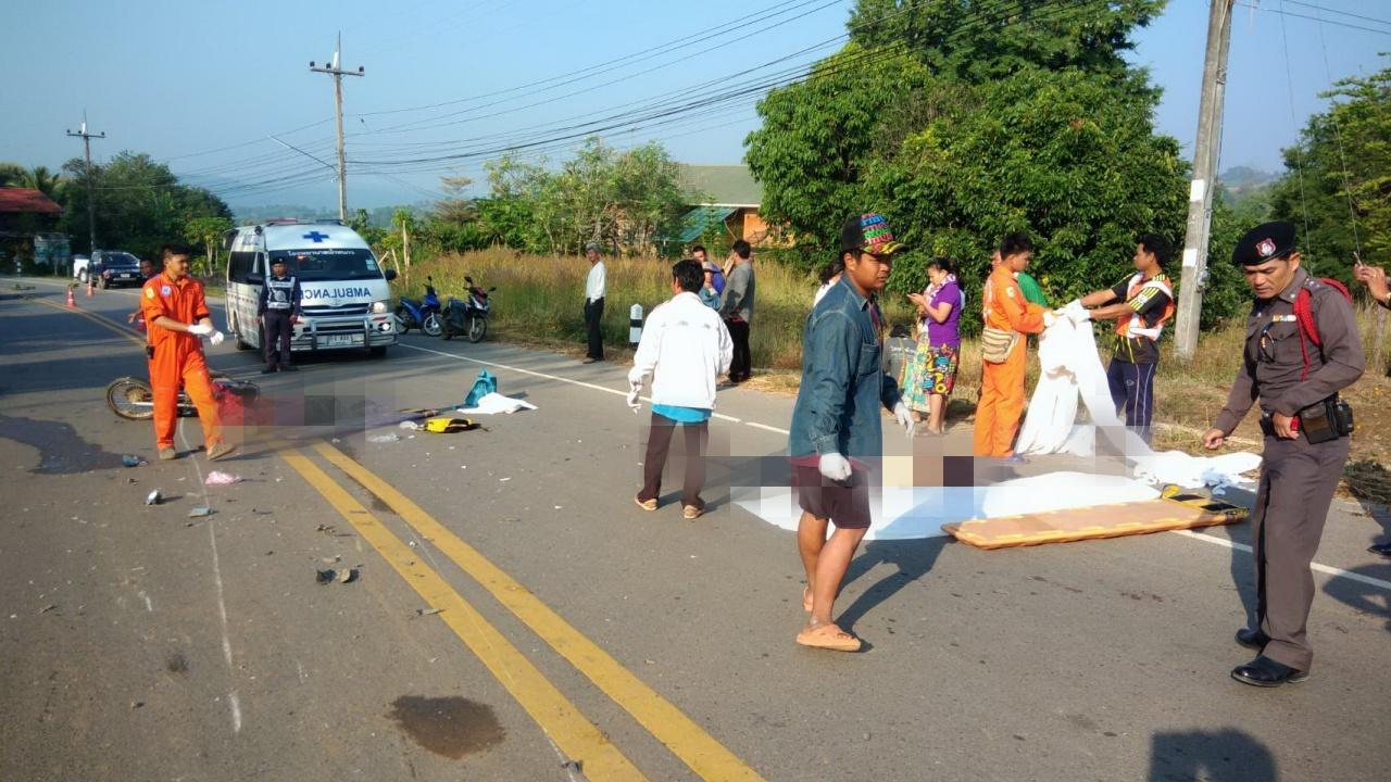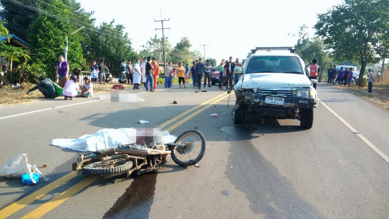 หนุ่มขับรถชนประสานงา 2 ผัวเมีย ชาวไร่ กำลังขี่จยย.สวนทางมา กำลังจะไปเก็บมะขามที่ไร่ แซงรถคันหน้าไม่พ้นเลยชนเต็มๆ ตายสยองคาที่ เหตุเกิด อ.น้ำหนาว จ.เพชรบูรณ์
