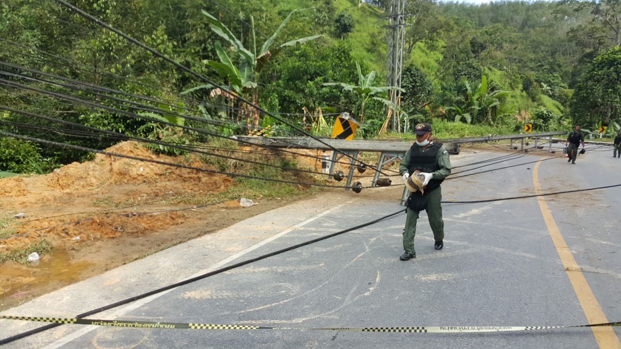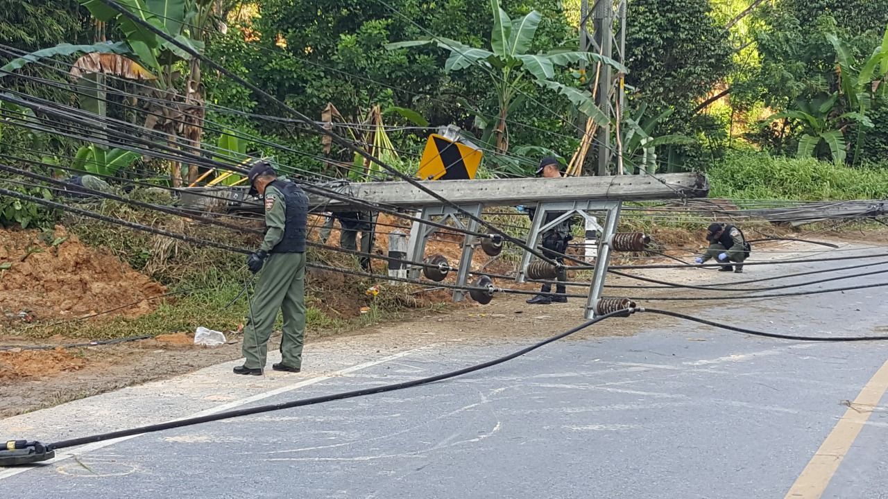 จุดเกิดเหตุพบว่าคนร้ายได้นำระเบิดผูกติดกับเสาไฟฟ้าแล้วระเบิด ทำให้เสาไฟฟ้าได้รับความเสียหายจากแรงระเบิดหักโค่นล้มลงขวางถนนจำนวน 5 ต้น เจ้าหน้าที่ยังตรวจพบลูกระเบิดอีก 1 ลูก ยังไม่ระเบิด เป็นระเบิดแสวงเครื่อง บรรจุอยู่ในท่อเหล็กทรงกลม กว้าง 7 นิ้ว สูง 6.5 นิ้ว น้ำหนักประมาณ 7 กิโลกรัม จุดชนวนด้วยนาฬิกาปลุก ตั้งเวลาไว้ เที่ยงคืน ผูกติดกับเสาไฟฟ้าที่ล้มลง จึงทำการเก็บกู้ เจ้าหน้าที่คาดว่าระเบิดลูกนี้ตั้งไว้เผื่อหวังสังหารเจ้าหน้าที่หากเข้าตรวจสอบเมื่อกลางดึกที่ผ่านมาแต่วงจรไม่สมบูรณ์เลยไม่ระเบิด