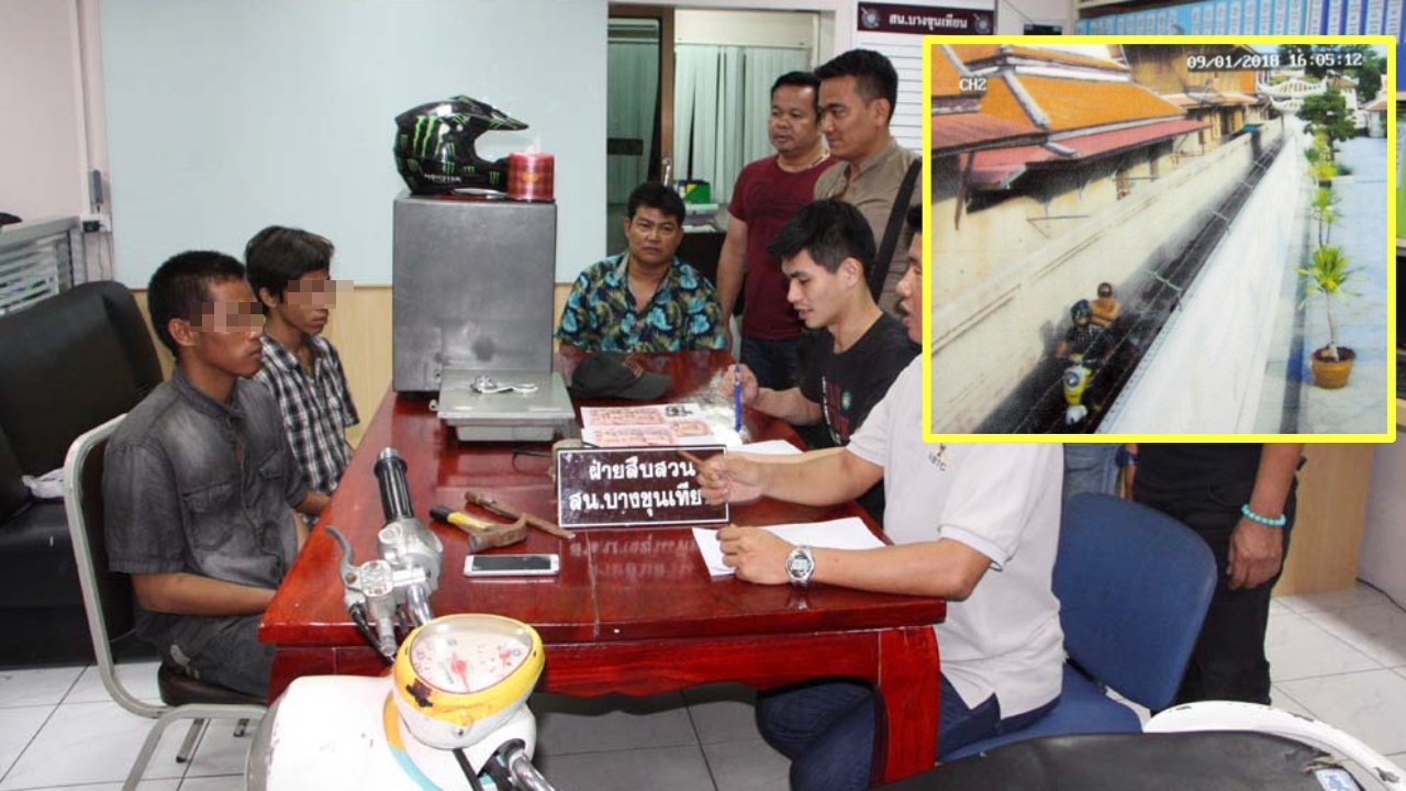 เมื่อเวลา 07.00 น. วันที่ 10 ม.ค.61 พ.ต.อ.พงศ์อานันต์ คล้ายคลึง รอง ผบก.น.9 พร้อมด้วย พ.ต.อ.ลือศักดิ์ ดำเนินสวัสดิ์ ผกก.สน.บางขุนเทียน พ.ต.ท.ณรงค์ฤทธิ์ ทองแพ รอง ผกก.สส.สน.บางขุนเทียน และ พ.ต.ต.จารุกิตติ์พัฒน์ สุขยิ่ง สว.สส.สน.บางขุนเทียน นำกำลังจับกุม นายทัตชัย ไทยพุ่ม หรือ “กอล์ฟ วัดไทร” อายุ 23 ปี และ นายนรินทร์ หรือแมค สีมงคลรัตน์ อายุ 20 ปี พร้อมของกลาง รถ จยย.ยี่ห้อยามาฮ่า รุ่นฟีโน่ สีเหลืองฟ้า ทะเบียน ลจม 34 กรุงเทพมหานคร ตู้เซฟยี่ห้อ OTANI ขนาดความจุประมาณ 100 ลิตรที่ถูกงัดฝาออกแล้ว 1 ใบ เงินสด 1,325.50 บาท เครื่องเจียไฟฟ้าพร้อมค้อนและสิ่ว 1 ชุด หมวกนิรภัย 1 ใบ และหมวกแก๊ปอีก 1 ใบ โดยจับกุมตัวทั้ง 2 รายได้ในบ้านเลขที่ 17/12 หมู่ 2 แขวงบางขุนเทียน เขตจอมทอง กทม.