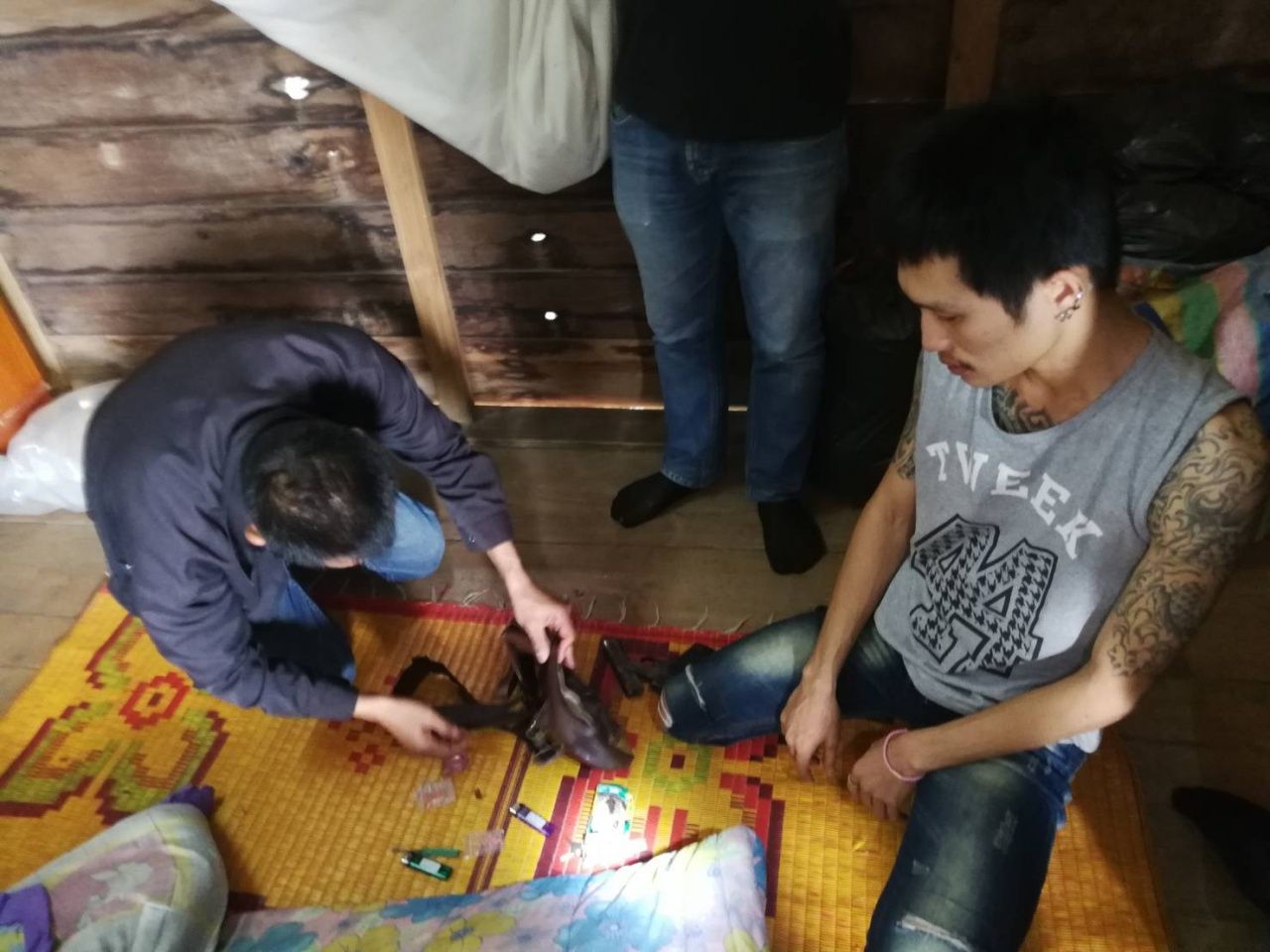 เจ้าหน้าที่จึงตรวจสอบกล้องวงจรปิด พบว่ารถคันดังกล่าวอยู่ในความครอบครองของ นายสุทธิรัตน์ จากการสืบสวนทราบว่าพักอาศัยอยู่กับ น.ส.ไหม (นามสมมติ) อายุ 21 ปี ภรรยา ที่บ้านหลังดังกล่าว จึงนำกำลังเข้าตรวจค้น พบยาบ้า 48 เม็ด และอาวุธปืน .32 ไม่มีทะเบียน พร้อมกระสุน 1 นัด ซุกซ่อนอยู่บนบ้าน ส่วนภายในรถพบอาวุธปืนลูกซองสั้นไม่มีทะเบียนพร้อมกระสุน 1 นัด เจ้าหน้าที่ทำการตรวจปัสสาวะพบเป็นสีม่วง