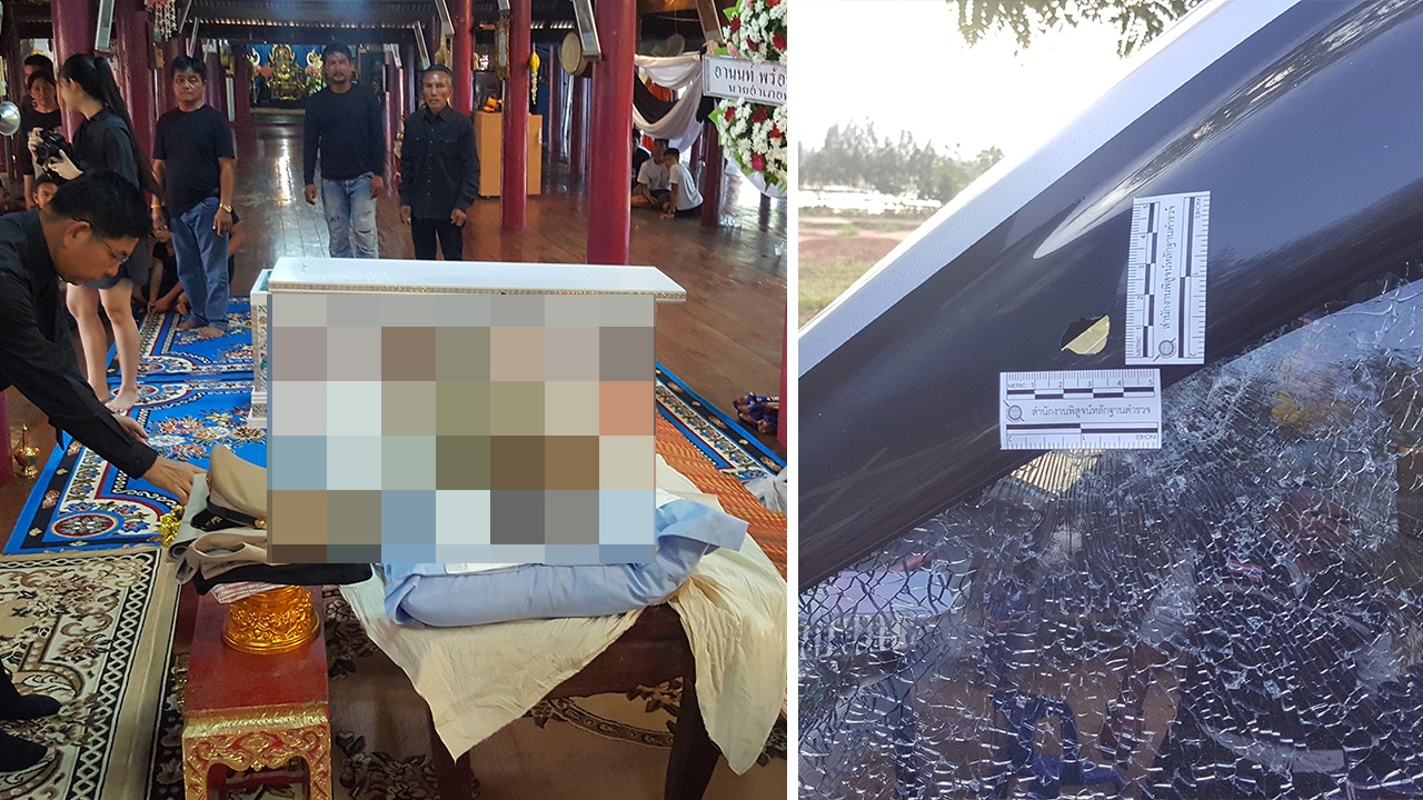 คืบหน้าคนร้ายใช้อาวุธปืนติดกล้อง ซุ่มยิงผู้ใหญ่บ้านที่เพชรบุรี เสียชีวิตขณะไปร่วมงานศพลูกบ้าน ล่าสุด พบปลอกกระสุนเอ็ม 16 หัวกระสุน 1 หัว ชนิดเจาะเกราะ และชิ้นส่วนหัวกระสุนในรถยนต์ที่จอดใกล้เคียง เชื่อคนร้ายเป็นมืออาชีพและต้องรู้จักกับผู้ตายเป็นอย่างดี