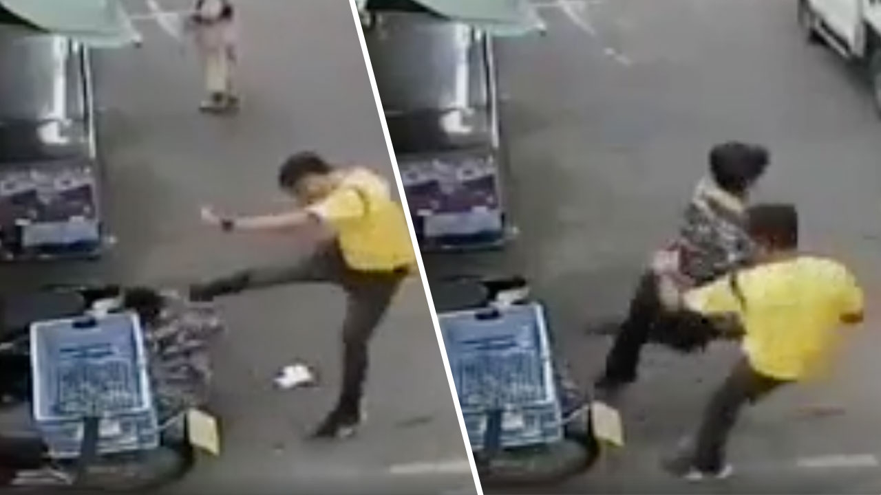 วินาทีชีวิตของหญิงสาวคนหนึ่งขณะคุยโทรศัพท์ แต่แล้วจู่ได้มีชายเสื้อเหลืองเดินเข้ามาหาก่อนที่จะใช้ลำแข็งเตะไปที่ขาของหญิงสาวจนล้มไปนอนที่พื้น ชายเสื้อเหลืองก็ใช้ลำแข้งเตะไปที่บริเวณหน้าอีก 1 ครั้ง จนรองเท้าชายเสื้อเหลืองติดที่ใบหน้าหญิง ชายเสื้อเหลืองจึงหยิบรองเท้าสวมใส่และเดินหนีไปเหมือนไม่มีอะไรเกิดขึ้น ท่ามกลางสายตาของผู้เห็นเหตุการณ์แต่กลับไม่มีใครเข้าช่วยเหลือ
