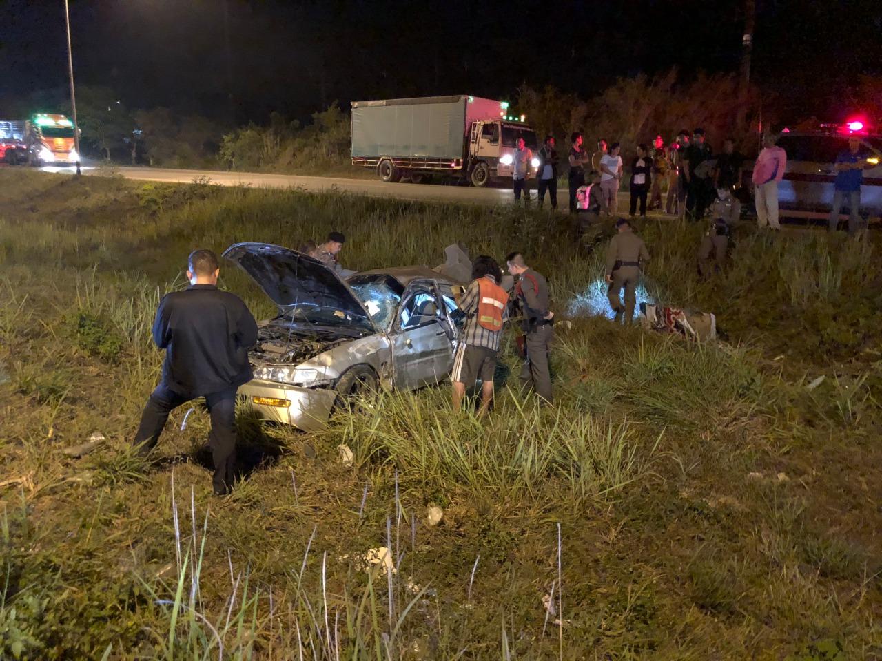 ทางตำรวจสายตรวจชุดวิหคจึงได้ขับรถไล่ติดตาม จนกระทั่งไปพบรถเก๋งคันนี้เสียหลักพุ่งชนเสาไฟฟ้าส่องสว่างบริเวณร่องน้ำกลางถนนสายเอเชีย ขาด 1ต้น ซึ่งอยู่หน้าโรงงานโชติวัฒน์ ต.นาหม่อม อ.หาดใหญ่ หลังจากที่ขับรถเก๋งหนีมาได้ราว 5 กิโลเมตร และสภาพรถเก๋งขาด 2 ท่อน สภาพหายท้องตกลงไปอยู่ในคูกลางถนนแต่ไม่มีใครอยู่ในรถ
