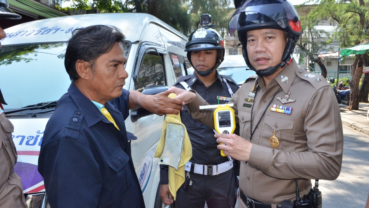 จากการตรวจวัดปริมาณแอลกอฮอล์ และตรวจหาอาวุธภายในรถตามจุดดังกล่าว พบผู้กระทำความผิด 1 คน นายเหียม อุนัยบัน อายุ 55 ปี พนักงานขับรถตู้อนุสาวรีย์-มหาชัย พบอาวุธมีด (อีโต้) อยู่บริเวณข้างประตูคนขับจึงได้ควบคุมตัวมาที่บริเวณเต็นท์กวดขันวินัยจราจรฝั่งเกาะพญาไท เพื่อดำเนินคดีในข้อหา "พกพาอาวุธมีดไปในเมือง หมู่บ้าน และทางสาธารณะโดยไม่มีเหตุอันควร ทำการเปรียบเทียบปรับเป็นเงิน 500 บาท ก่อนว่ากล่าวตักเตือนและปล่อยตัวไป