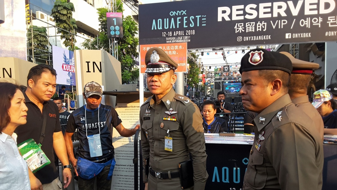 “สำหรับพื้นที่ 11 จุดทั่วกรุงเทพฯที่จัดให้มีการเล่นน้ำสงกรานต์นั้น ไม่พบคดีอุกฉกรรจ์และคดีอนาจาร รวมถึงการเต้นเปลือยกายก็ยังไม่พบ แต่มีคดีเกี่ยวกับทรัพย์ 24ราย ทำร้ายร่างกาย 6 ราย จำหน่ายแอลกอฮอล์ในจุดห้ามขาย 4ราย และก่อความเดือดร้อนรำคาญ 1ราย ภาพรวมปีนี้ บช.น. ควบคุมอาชญากรได้ดีกว่าปีก่อน ขณะที่พื้นที่อาร์ซีเอนั้น ตนเน้นย้ำให้ตำรวจผู้ปฎิบัติงานอดทนอดกลั้น ให้ใช้วาจาสุภาพเนื่องจากจุดนี้มีการจำหน่ายแอลกอฮอล์เพราะเป็นสถานบริการ จึงต้องคุยชี้แจงให้ผู้มาเล่นน้ำเข้าใจ โดยเตรียมกำลังตำรวจทั้งในและนอกเครื่องแบบไว้250นาย เน้นย้ำประชาชนเรื่องซองกันน้ำที่ใส่มือถือและเงินให้ดูแลดี ๆ เพราะมีมิจฉาชีพจะใช้คัตเตอร์และมีดแหลมตัดเชือกที่ซองได้ ทางตำรวจจะแจกซองที่เชือกเหนียวป้องกันการถูกกรีดได้” พล.ต.ต.ภาณุรัตน์ กล่าว.