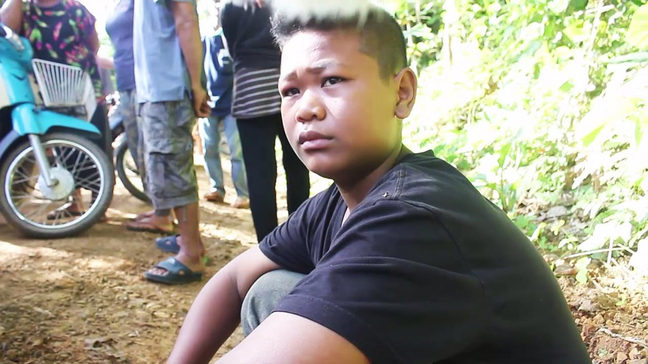ด.ช.ณัฐภูมิ ประทุมสาย หรือ น้องฟิล์ม อายุ 12 ปี ลูกชายผู้ตายซึ่งอยู่ในที่เกิดเหตุ ให้การว่า ครอบครัวเดิมเป็นชาวกำแพงเพชรมารับจ้างกรีดยางอยู่ในพื้นที่หมู่ 10 อยู่ห่างจากจุดเกิดเหตุประมาณ 2 กม. หลังจากพ่อกรีดยางเสร็จช่วงเย็นของเมื่อวานนี้ จากนั้นพ่อได้สะพานปืนยาวขี่รถ จยย. เข้าป่าไปยิงสัตว์ โดยนัดกับเพื่อนอีกคนไว้ ซึ่งมีบ้านอยู่ใกล้กัน จนกระทั่งเช้าวันนี้พ่อยังไม่กลับบ้าน จึงขี่รถจักรยานยนต์พาน้องชายอายุ 9 ขวบ ออกตามหาพ่อ มาพบกลายเป็นศพนอนตายอยู่บนถนนในสวนปาล์มดังกล่าวแล้ว