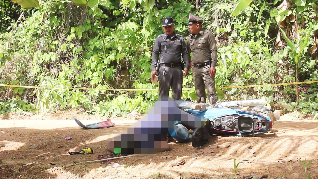 สลดสองพี่น้องขี่ จยย.ตามหาพ่อออกล่าสัตว์ เห็นหายไปทั้งคืน พบถูกลูกซองยิงพรุนทั้งตัวดับสยองคาถนนกลางสวนปาล์ม บ้านทุ่งคอกช้าง อ.สวี ตร.คาดปมสังหารครั้งนี้มาจากขัดแย้งส่วนตัว และยาเสพติด...