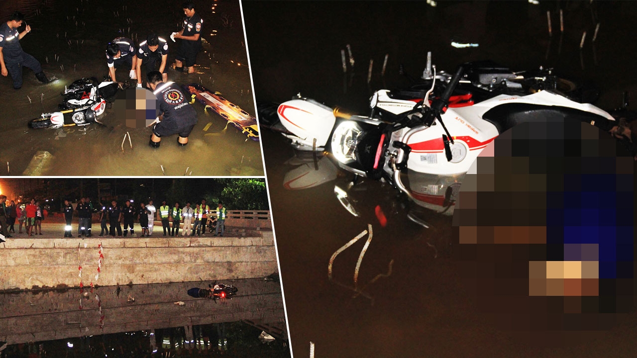 หนุ่มสุรินทร์ซิ่งมอเตอร์ไซค์ขนาดเล็ก เบรกไม่อยู่ พลัดตกบ่ออยู่ระหว่างกำลังก่อสร้างสะพานข้ามคลองมอญ เมืองปากน้ำ ถูกเหล็กเส้นเสียบคาหน้าผากดับคาที่...