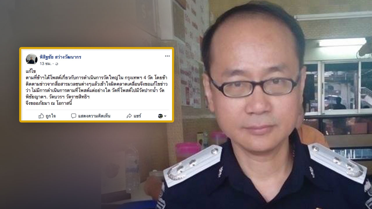 "พิสิฐชัย สว่างวัฒนากร" เจ้าหน้าที่ดีเอสไอ คนปูดข่าวเตรียมจับเจ้าอาวาสวัดดัง ในคดีเงินทอน ลอต 4 โพสต์ข้อความขอโทษแล้ว อ้าง เข้าใจผิดคลาดเคลื่อน