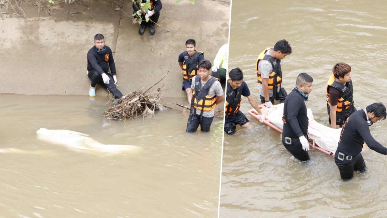 ส่วนในคลองชลประทานซึ่งตอนแรกมีระดับน้ำสูงและไหลเชี่ยว หน่วยกู้ภัยมูลนิธิสว่างกำแพงเพชรธรรมสถานไม่สามารถลงไปนำศพขึ้นมาได้ จึงประสานชลประทานให้ช่วยปิดน้ำ เมื่อระดับน้ำลดลงไปแล้วจึงลงไปนำศพมาขึ้นที่ตลิ่ง แต่เนื่องจากตลิ่งอยู่สูงจึงต้องมัดศพติดกับบอร์ดแล้วให้ด้านบนดึงศพขึ้นมาให้แพทย์เวรตรวจสอบ