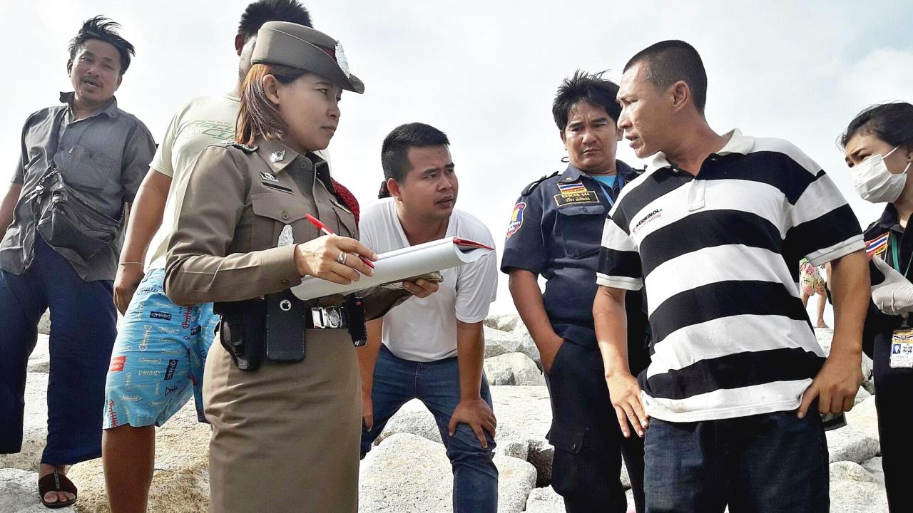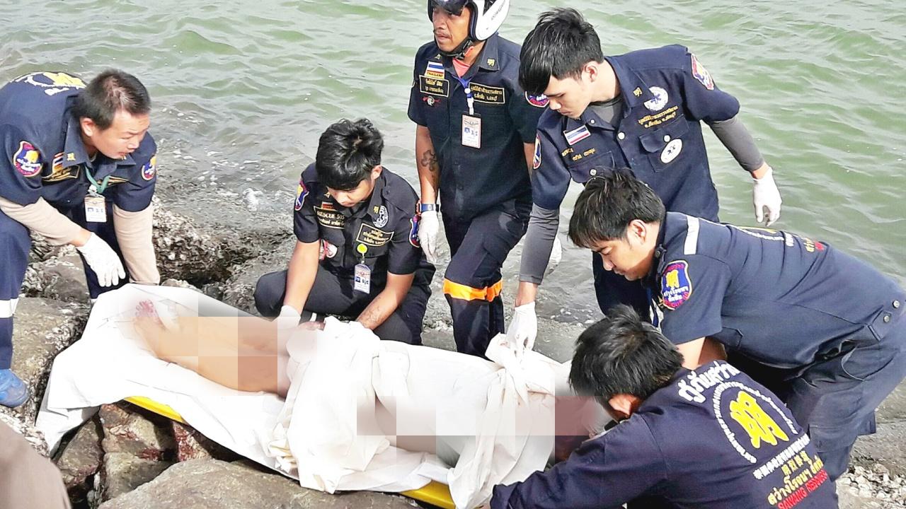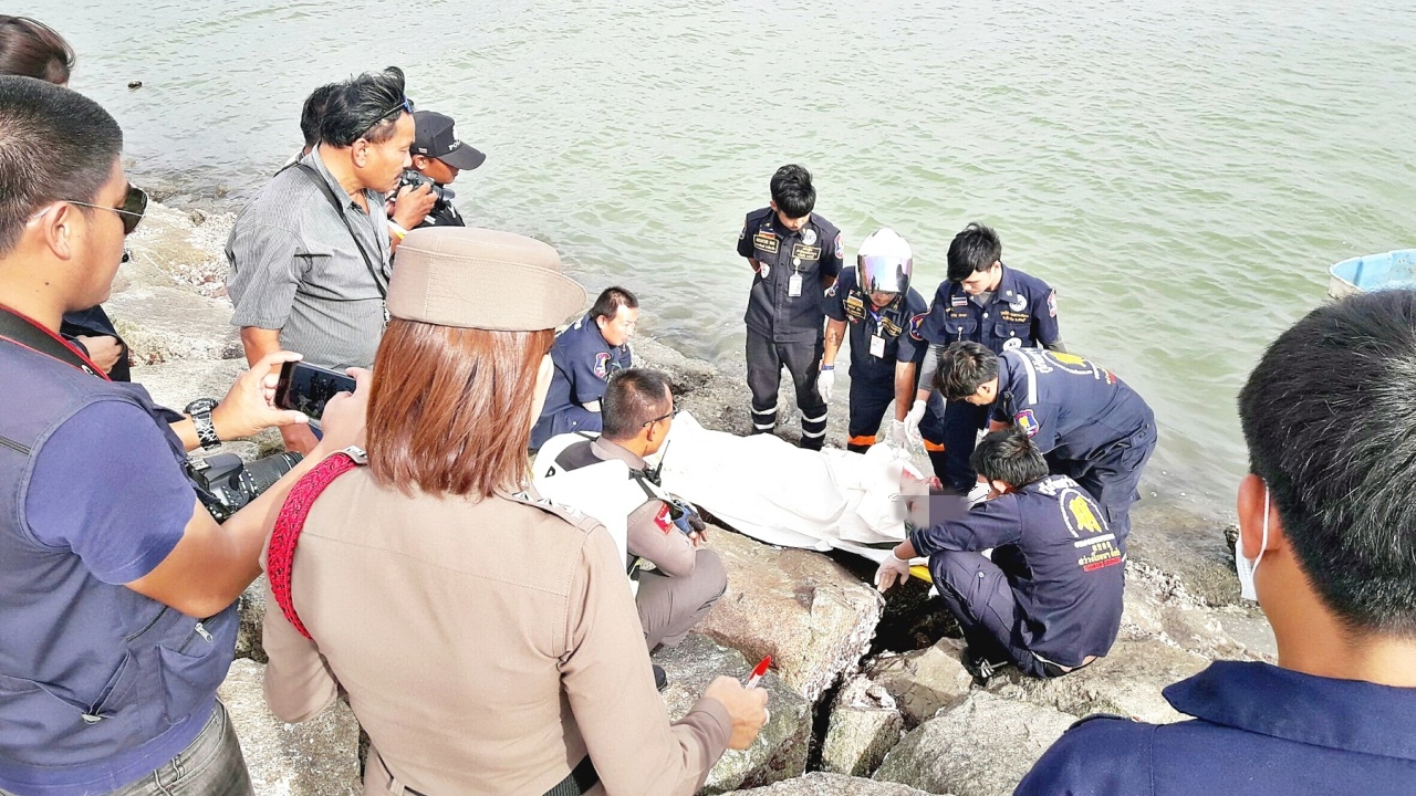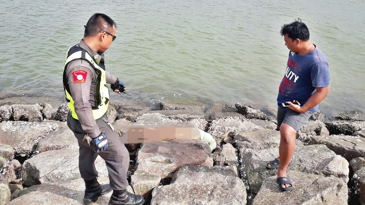 เมื่อเวลา 16.30 น. วันที่ 19 ก.ค.61 ร.ต.อ.หญิง รสิตา เณรพงษ์ รองสารวัตรสอบสวน สภ.นาจอมเทียน ได้รับแจ้งมีผู้พบศพผู้เสียชีวิต บริเวณปลายสันเขื่อนกันคลื่น ชายหาดบ้านอำเภอ ม.3 ต.นาจอมเทียน อ.สัตหีบ หลังรับแจ้งจึงได้รุดไปตรวจสอบ พร้อม พ.ต.อ.อาทร ชิ้นทอง ผกก.สภ.นาจอมเทียน เจ้าหน้าที่ชุดสืบสวน หน่วยกู้ภัยมูลนิธิสว่างโรจนธรรมสถาน