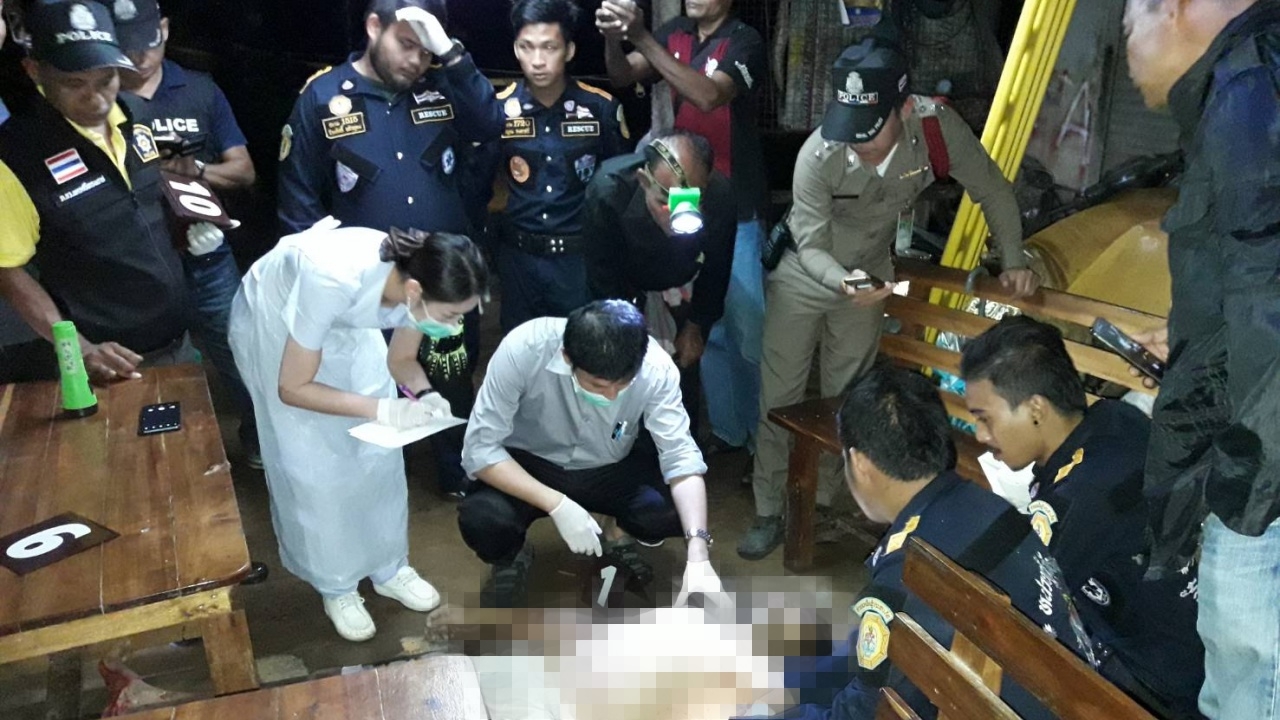 ที่เกิดเหตุ เป็นร้านซ่อมรถจักรยานยนต์ ที่พื้นหน้าร้านพบศพ นายธนะวัฒน์ เกิดบัวทอง อายุ 36 ปี เจ้าของบ้านและเป็นช่างซ่อมรถจักรยานยนต์ นอนหงายเสียชีวิตอยู่ มีบาดแผลถูกยิงด้วยอาวุธปืนขนาด 9 มม. เหนือราวนมขวา 1 แผล หัวไหล่ซ้าย 1 แผล ชายโครงซ้าย 3 แผล กระสุนฝังใน เลือดทะลัก ในที่เกิดเหตุพบปลอกกระสุนปืนขนาด 9 มม. 4 ปลอก หัวกระสุน 1 หัว จึงเก็บไว้เป็นหลักฐาน