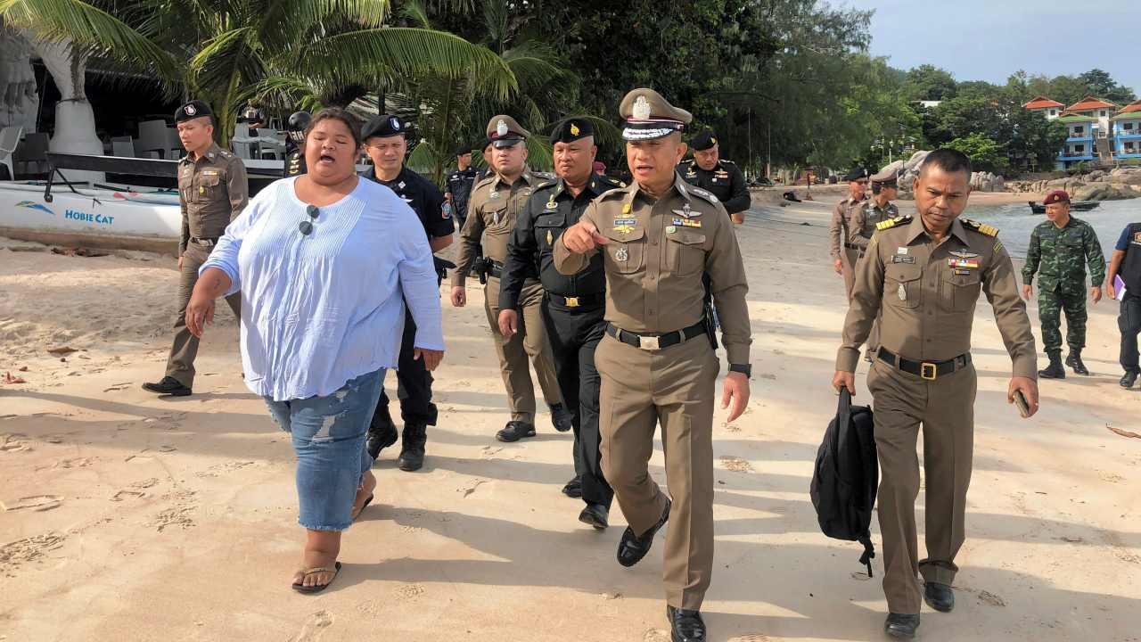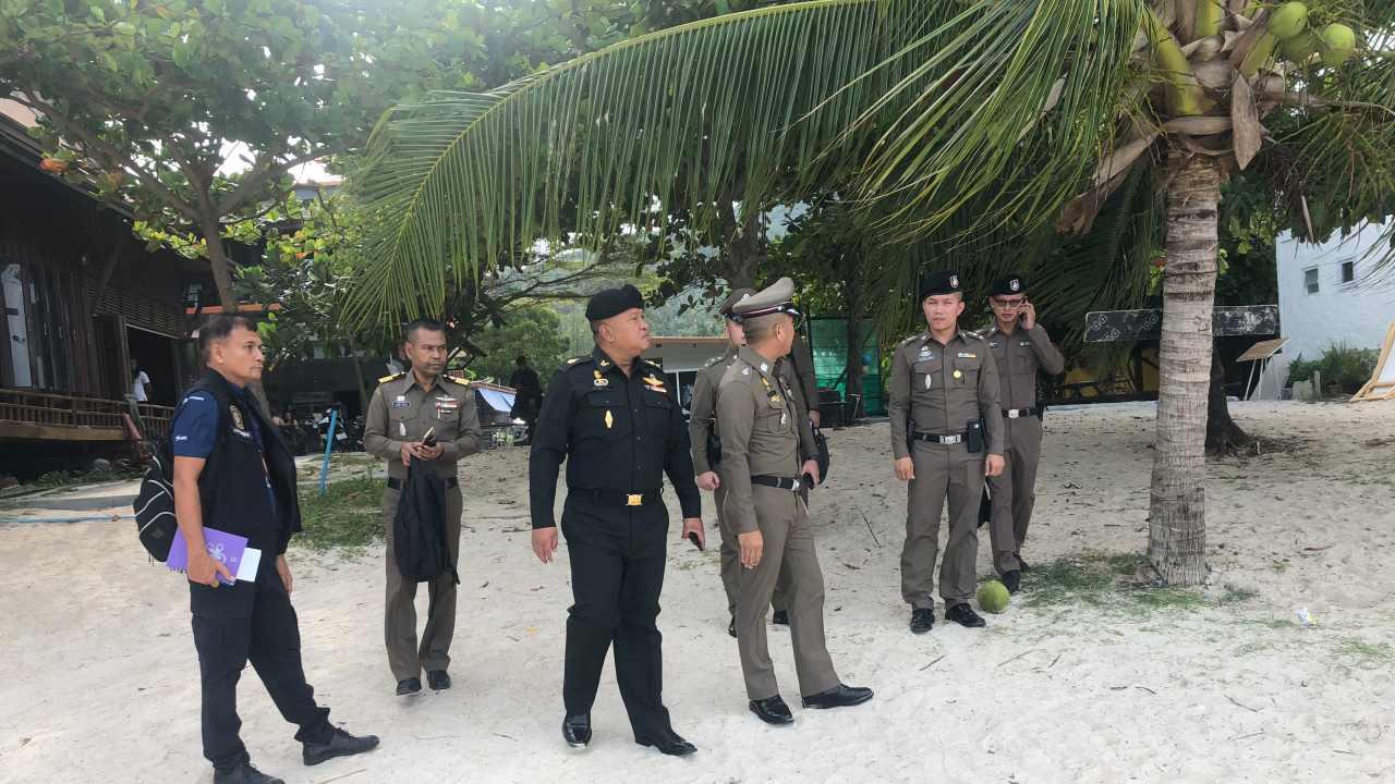 เวลา 08.30 น.วันที่ 27 ส.ค. พล.ต.ต.อภิชาติ บุญศรีโรจน์ ผบก.ภ.จว.สุราษฎร์ธานี พร้อมด้วย พล.ต.เกรียงไกร ศรีรักษ์ ผู้บัญชาการกองบัญชาการช่วยรบที่ 4 (ผบ.บชร.4) และกองกำลังรักษาความสงบเรียบร้อยกองทัพภาคที่ 4 ส่วนหน้า ขึ้นเฮลิคอปเตอร์บินด่วนไปยังสนามหน้าที่ว่าการ อ.เกาะพะงัน (ส่วนหน้าเกาะเต่า) ต.เกาะเต่า อ.เกาะพะงัน พร้อมตำรวจท่องเที่ยว ตำรวจตรวจคนเข้าเมือง นายไชยันต์ ธุระสกุล นายกเทศมนตรี ต.เกาะเต่า และผู้นำท้องถิ่น ลงพื้นที่ตรวจสอบบริเวณหาดทรายรี ต.เกาะเต่า