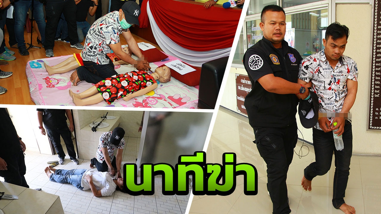 รอง ผบ.ตร. นำท้าวพูล้า แถลงข่าว พร้อมจำลองเหตุการณ์ฆ่าปาดคอยาย เพื่อนหลาน 2 ศพ บนโรงพัก ยันบังคับไม่ได้ กรณีญาติคนตายจี้เอาตัวไปขอขมา ...