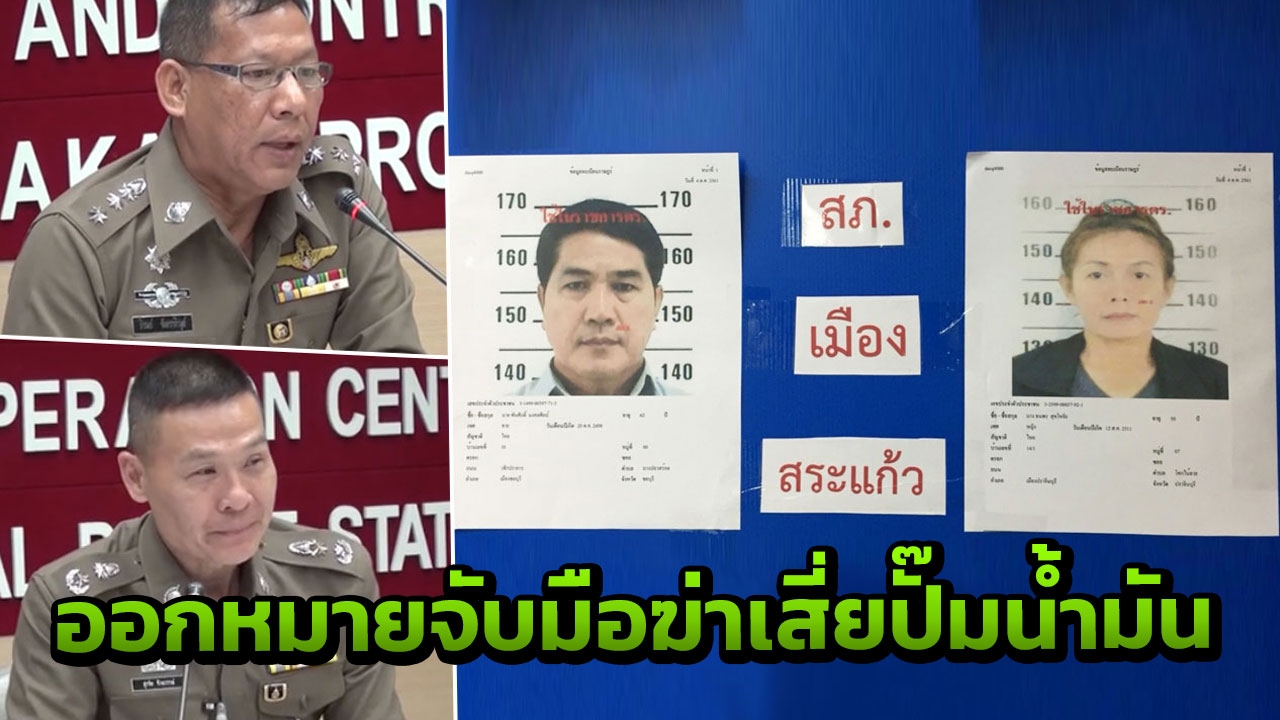 ตำรวจสระแก้วแถลงออกหมายจับ 2 ทีมฆ่าเจ้าของปั๊มน้ำมัน ระบุ อดีต พ.ต.อ.ที่พัวพันคดีอุ้มฆ่าหลายคดี เป็นมือยิง ยืนยันผู้บงการเป็นอดีตเจ้าของเดิม หนีไปเข็นรถวีลแชร์ลงน้ำฆ่าตัวตายที่อำนาจเจริญแล้ว