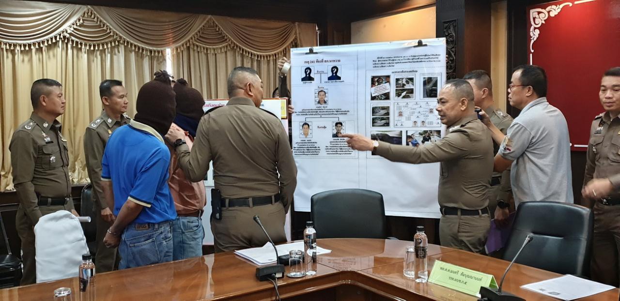 เมื่อเวลา 11.00 น. วันที่ 11 ต.ค. ที่ห้องประชุมตำรวจภูธรภาค 5 พล.ต.ต.มนตรี สัมบุณณานนท์ รรท.ผบช.ภ.5 พล.ต.ต.ภาณุเดช บุญเรือง รองผบช.ภ.5 พร้อมด้วย พ.ต.อ.พิเชษฐ์ จีระนันตสิน รรท.ผบก.ภ.จว.เชียงใหม่ และพ.ต.อ.ฤกษ์ชัย แสงสว่าง ผกก.สภ.นาหวาย อ.เชียงดาว จ.เชียงใหม่ ได้ร่วมแถลงข่าวการจับกุมตัวนายสุทัศน์ จันทวงค์ อายุ 61 ปี บ้านเลขที่ 37 หมู่ที่ 1 ต.เมืองงาย อ.เชียงดาว จว.เชียงใหม่ กับนายฉลอง สมเพชร อายุ 57 ปี อยู่บ้านเลขที่ 25/13 หมู่ที่ 3 ต.พยอม อ.วังน้อย จว.พระนครศรีอยุธยา โดยแจ้งข้อหา “ร่วมกันกักขังหน่วงเหนี่ยวหรือกักขังผู้อื่น หรือกระทำการด้วยประการใดๆ ให้ผู้อื่นปราศจากเสรีภาพในร่างกาย, ร่วมกันฆ่าผู้อื่น, ร่วมกันมีอาวุธปืนไว้ในความครอบครองโดยไม่ได้รับอนุญาต, ร่วมกันชิงทรัพย์” พร้อมของกลาง รถยนต์กระบะแค็บ ยี่ห้อฟอร์ด สีเทา หมายเลขทะเบียน ผค – 6735 เชียงใหม่ จำนวน 1 คัน และกระบะ ฟอร์ด สีเทา หมายเลขทะเบียน บร - 8435 พระนครศรีอยุธยา จำนวน 1 คัน