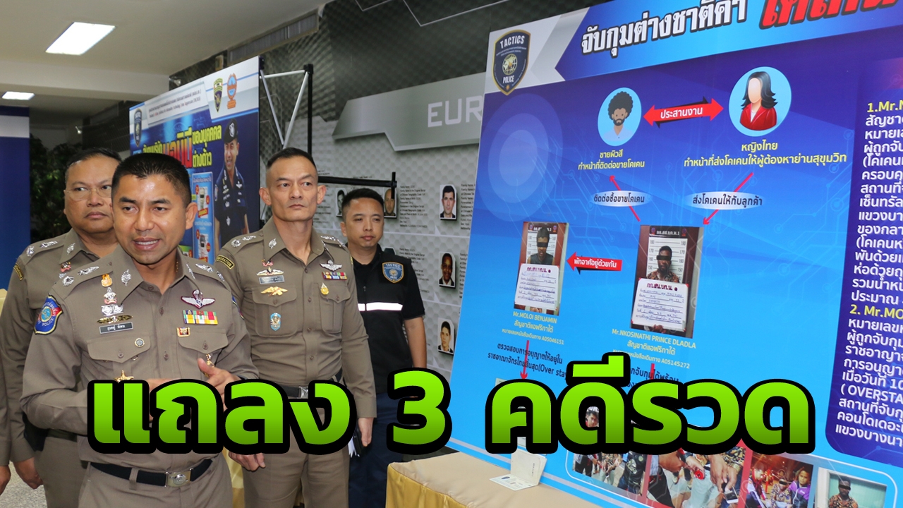 ‘บิ๊กโจ๊ก’ แถลงจับ 3 คดีรวด ทั้ง หนุ่มกานาปลอมเอกสารสัญญาจ้างนักเตะสโมสรฟุตบอลชื่อดัง หวังอยู่ไทยต่อ พร้อมรวบชาวแอฟริกาใต้ค้าโคเคนให้วัยรุ่น และโอเวอร์สเตย์