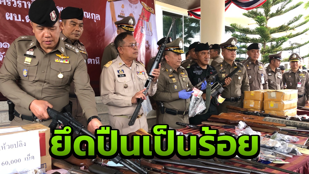 ศรีวราห์ ขออนุมัติหมายจับ 8 โจรใต้ รับมอบตัว 2 ราย วางระเบิดเสา-ร่วมแกนนำซุกกระสุนปืน พร้อมแถลงยึดอาวุธปืนกว่าร้อยกระบอก ...