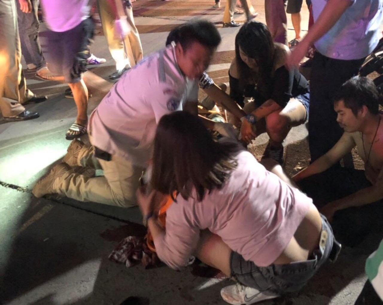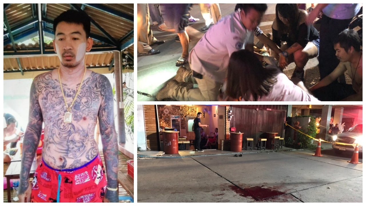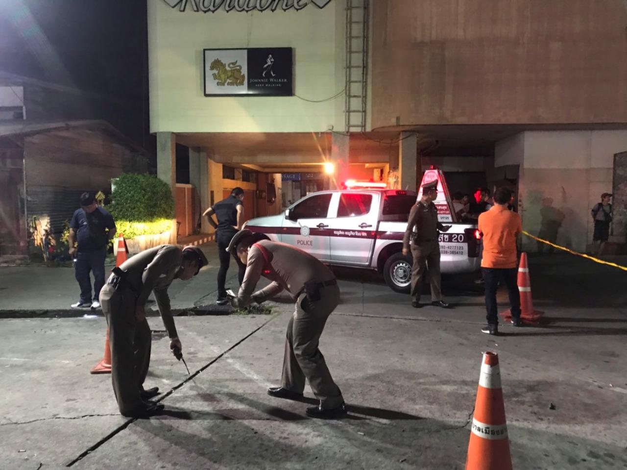 ที่เกิดเหตุพบกองหยดเลือดกระจายบริเวณลานจอดรถ มีเสื้อชุ่มเลือดกองอยู่ และปลอกกระสุนปืนขนาด.32 มม. จำนวน 2 ปลอก ตกอยู่ ส่วนผู้ถูกยิง 2 คน ทราบชื่อ นายวีรภัทร นัดทวี หรือ เดี่ยว อายุ 33 ปี ชาวบ้าน หมู่ 4 ต.ห้วยกะปิ อ.เมือง จ.ชลบุรี ถูกยิงเข้าที่เบ้าตาซ้ายกระสุนฝังในศีรษะ 1 นัด และนายภานุพันธ์ หรือโน้ต อินทร์ฤทธิ์ อายุ 34 ปี ชาวบ้าน ถนนมิตรสัมพันธ์ ต.แสนสุข อ.เมือง จ.ชลบุรี ถูกกระสุนปืนขนาดเดียวกันยิงเข้าบริเวณชายโครงซ้าย อาการสาหัสทั้งคู่ กู้ภัยฯ นำส่ง โรงพยาบาลมหาวิทยาลัยบูรพา ต่อมา นายวีรภัทร ก็เสียชีวิตในเวลาต่อมา