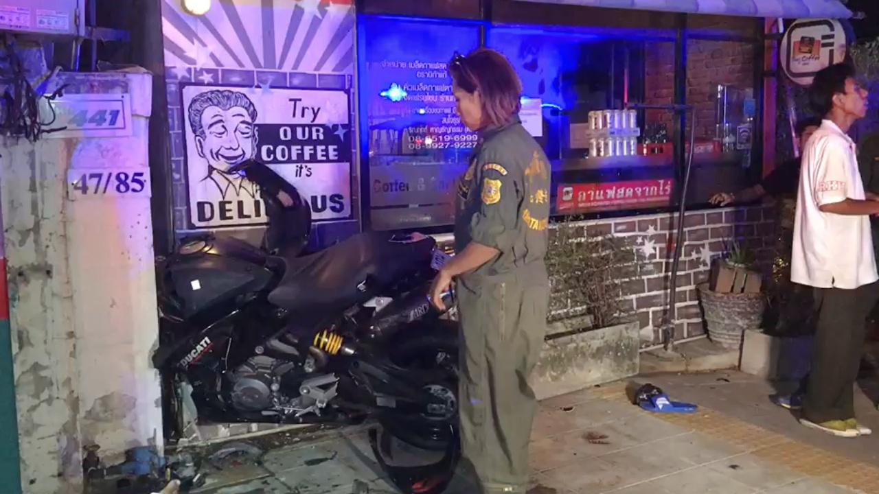 ที่เกิดเหตุพบผู้ได้รับบาดเจ็บเป็นชาย 1 ราย ไม่ทราบชื่อ อายุประมาณ 30-40 ปี อาการสาหัส ขาด้านซ้ายและคอหัก หมดสติ จากนั้นจึงได้ประสานขอรถกู้ชีพมาช่วยเหลือทำการ CPR อยู่ประมาณ 30 นาที แต่ผู้บาดเจ็บอาการสาหัสมาก และเสียชีวิตในเวลาต่อมา ใกลกันพบรถจักรยานยนต์บิ๊กไบค์ ยี่ห้อดูคาติ ไม่ทราบรุ่น สีดำ หมายเลขทะเบียน 1กน 90 กทม. สภาพด้านหน้ารถพุ่งชนกำแพง พังเสียหายยับเยิน