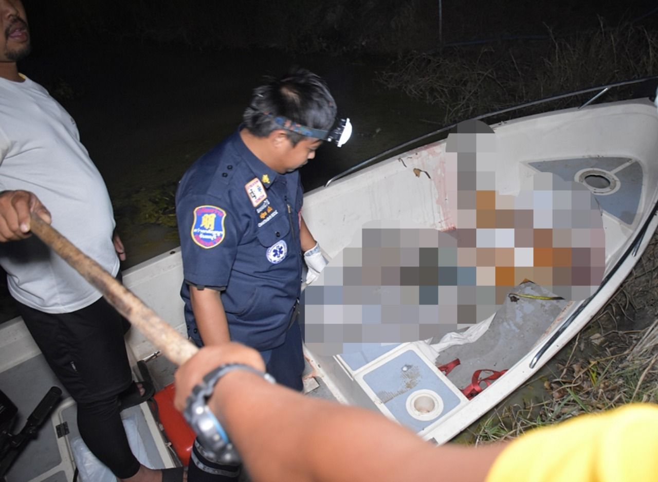 ที่เกิดเหตุ ซึ่งเป็นหนองน้ำขนาดใหญ่หลายสิบไร่ ซึ่งชาวบ้านเรียกว่า หนองตะพอง พบศพผู้เสียชีวิตเป็นชาย 1 ราย ลอยคว่ำหน้า สวมเสื้อยืดสีเหลือง กางเกงขาสั้นสีดำลายพรางมีรอยสักเต็มตัว ในสภาพอืดติดอยู่กับกอผักตบชวากลางหนองน้ำ เจ้าหน้าที่กู้ภัยฯ ได้รับมอบหมายให้นำเรือออกไปนำศพเข้าฝั่งเพื่อตรวจสอบ จากการตรวจสอบ สภาพศพขึ้นอืดส่งกลิ่นเหม็นคละคลุ้งไปทั่วบริเวณ ที่บริเวณศีรษะมีร่องรอยคล้ายถูกทุบตีด้วยของแข็ง และที่บริเวณข้อเท้าทั้งสองข้าง ถูกมัดติดกันด้วยเชือกผ้าร่ม โดยที่ข้อมือซ้ายของผู้ตายยังใส่สร้อยข้อมือทองหนัก 3 บาทอยู่