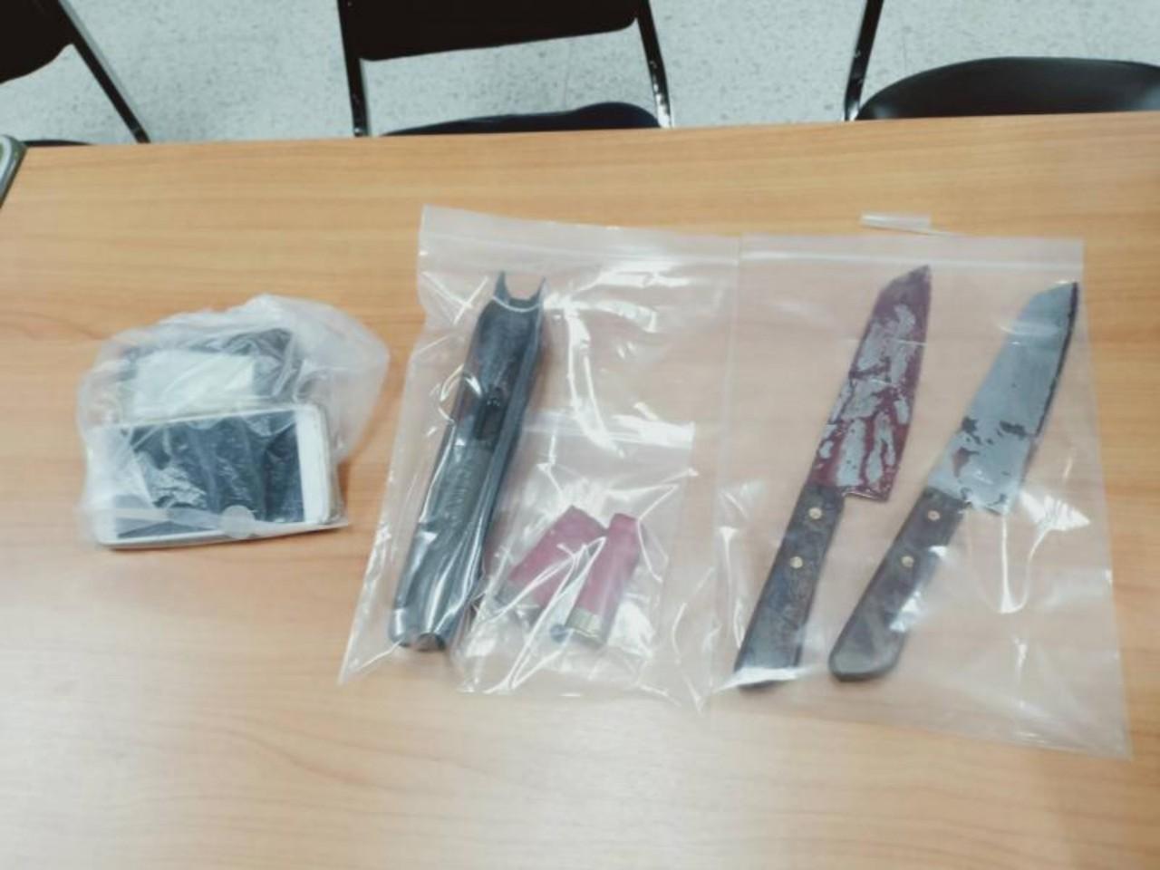 จากการตรวจสอบพื้นที่ใกล้ๆ กัน เจ้าหน้าที่ยังพบมีดทำครัว จำนวน 1 เล่ม ตกอยู่ในที่เกิดเหตุ และจากการตรวจสอบภายในรถยนต์ กระบะ เชฟโรเล็ต สีขาวหมายเลขทะเบียน บน 7612 จ.อุตรดิตถ์ ก็พบอาวุธปืนลูกซองยาว จำนวน 1 กระบอก ปลอกกระสุนลูกซอง เบอร์ 12 จำนวน 4 นัด อยู่ในสภาพใช้งานแล้ว เจ้าหน้าที่จึงได้เก็บไว้เป็นหลักฐาน