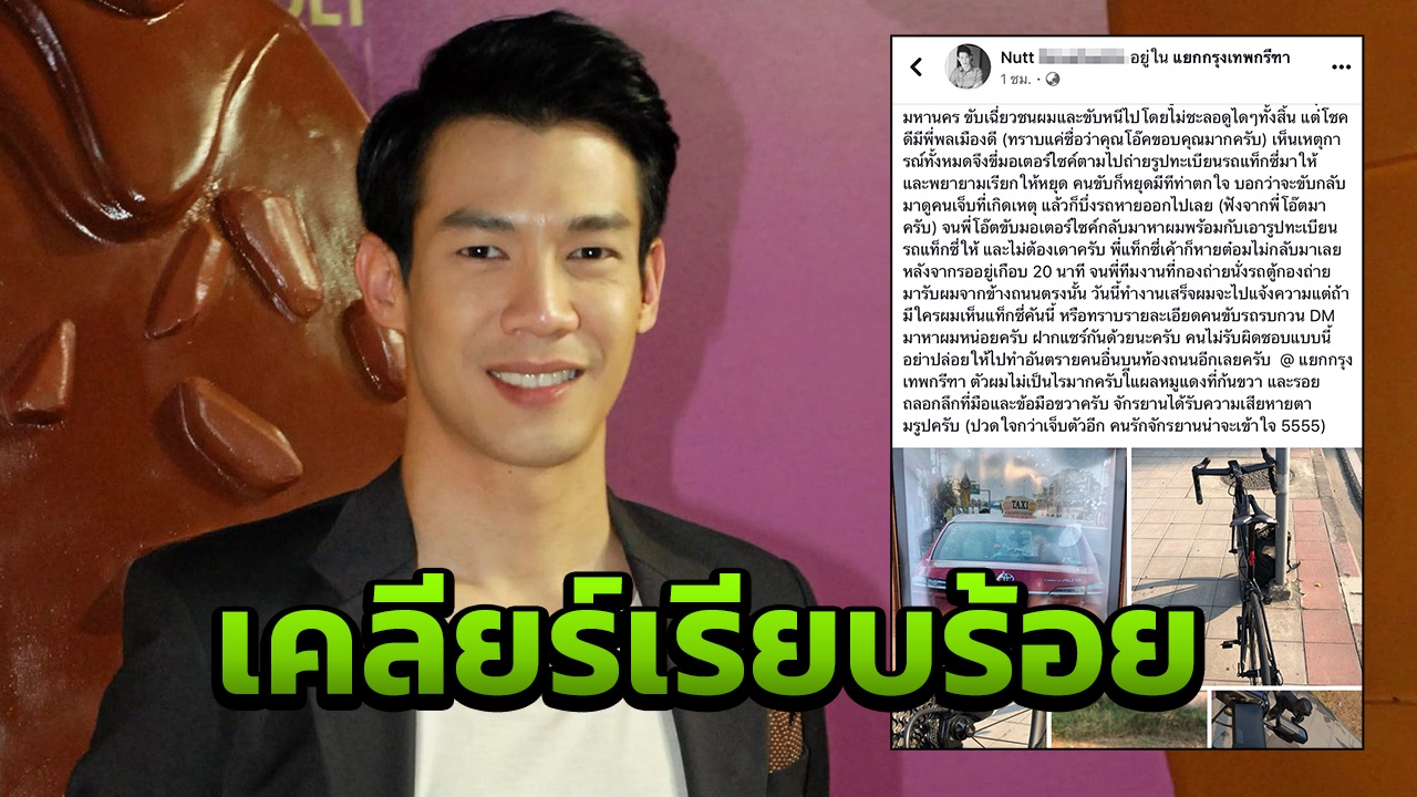 ณัฏฐ์ เทพหัสดิน ณ อยุธยา ไม่ติดใจเอาความ โชเฟอร์แท็กซี่คู่กรณี อายุ 65 ชนแล้วหนี ระหว่างกำลังปั่นจักรยานเสือหมอบมูลค่ากว่าหลักแสนบาท ไปยังกองถ่าย