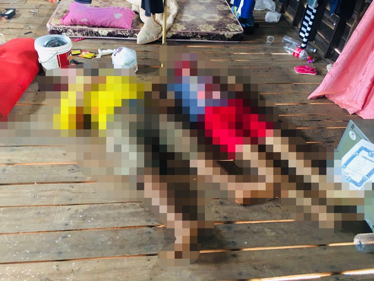 ที่เกิดเหตุพบว่า เป็นบ้านไม้สองชั้นยกสูงใต้ถุนโล่ง หมายเลขบ้าน สสร.ส.7-17/2558 ซึ่งเป็นบ้านที่ทางราชการสร้างให้ รายรอบด้วยป่าอ้อยสำหรับเป็นอาหารของช้าง บนพื้นบ้านชั้นบนพบศพ นางลัดดา จงใจงาม อายุ 40 ปี ชาวบ้าน หมู่ 10 บ้านโนนตาล้าน ต.นาหนองไผ่ อ.ชุมพลบุรี จ.สุรินทร์ ถูกยิงด้วยอาวุธปืนเข้าที่หน้าผาก 2 นัด นอกจากนั้นข้างกันยังพบร่างของ นายแสน จงใจงาม อายุ 41 ปี สามีของนางลัดดา นอนหายใจรวยริน มีบาดแผลถูกยิงเข้าที่ขมับขวา 1 นัด และพบอาวุธปืนพกสั้นขนาด .38 ตกอยู่ข้างลำตัวด้านซ้าย มีกระสุนอยู่ในลูกโม่ 6 นัด ใช้ยิงไปแล้ว 3 นัด จึงรีบนำผู้บาดเจ็บส่ง รพ.ท่าตูม แล้วส่งต่อ โรงพยาบาลสุรินทร์ แต่นายแสนอาการสาหัสมาก จึงเสียชีวิตในเวลาต่อมา