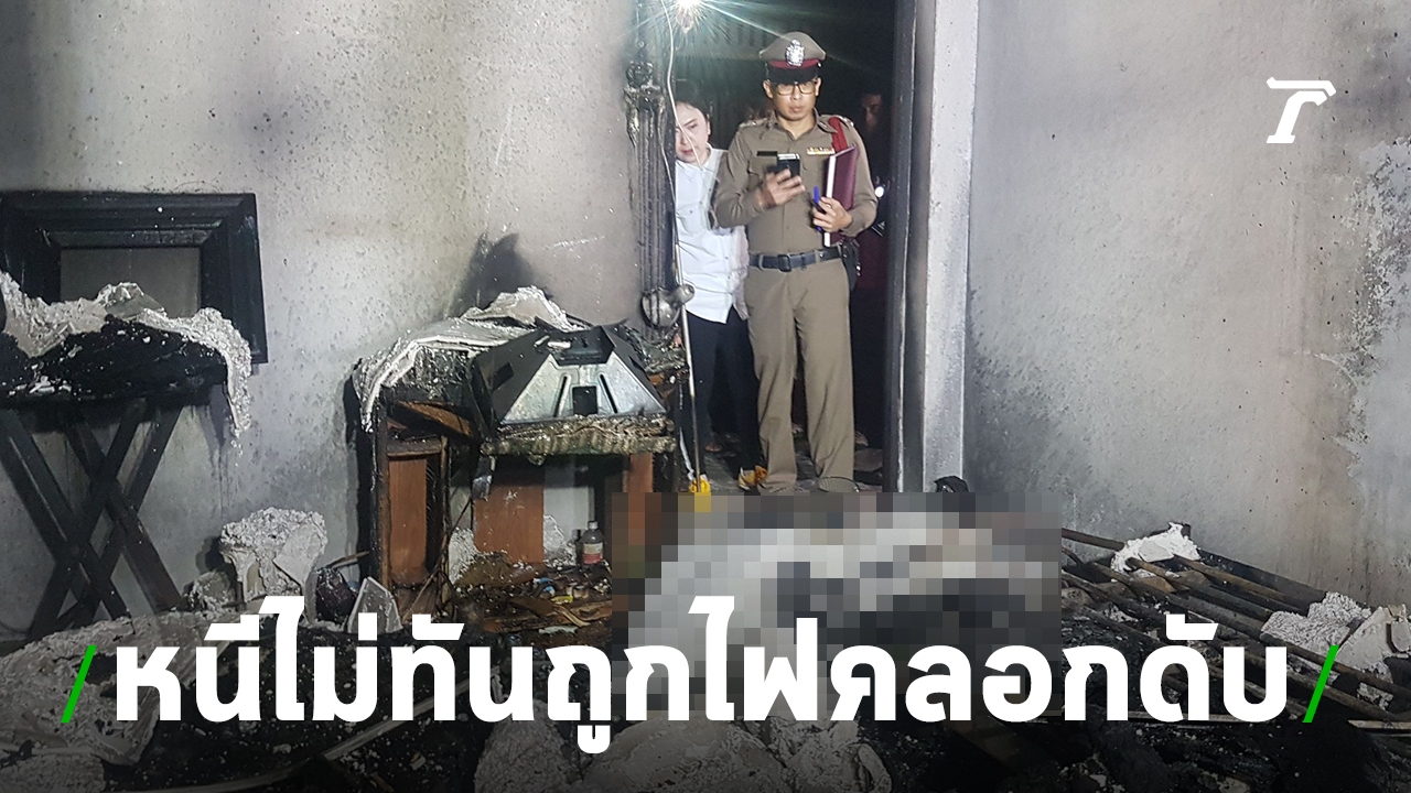 ไฟไหม้บ้านหนุ่มใหญ่ป่วยเป็นมะเร็งกล่องเสียง นอนอยู่ในห้องคนเดียว พยายามดิ้นรน หมุนลูกบิดประตูหนีตายก็แล้ว สุดท้ายถูกย่างสดดับคากองเพลิง ตำรวจพุ่งปมไฟฟ้าลัดวงจรเร่งสอบหาสาเหตุ