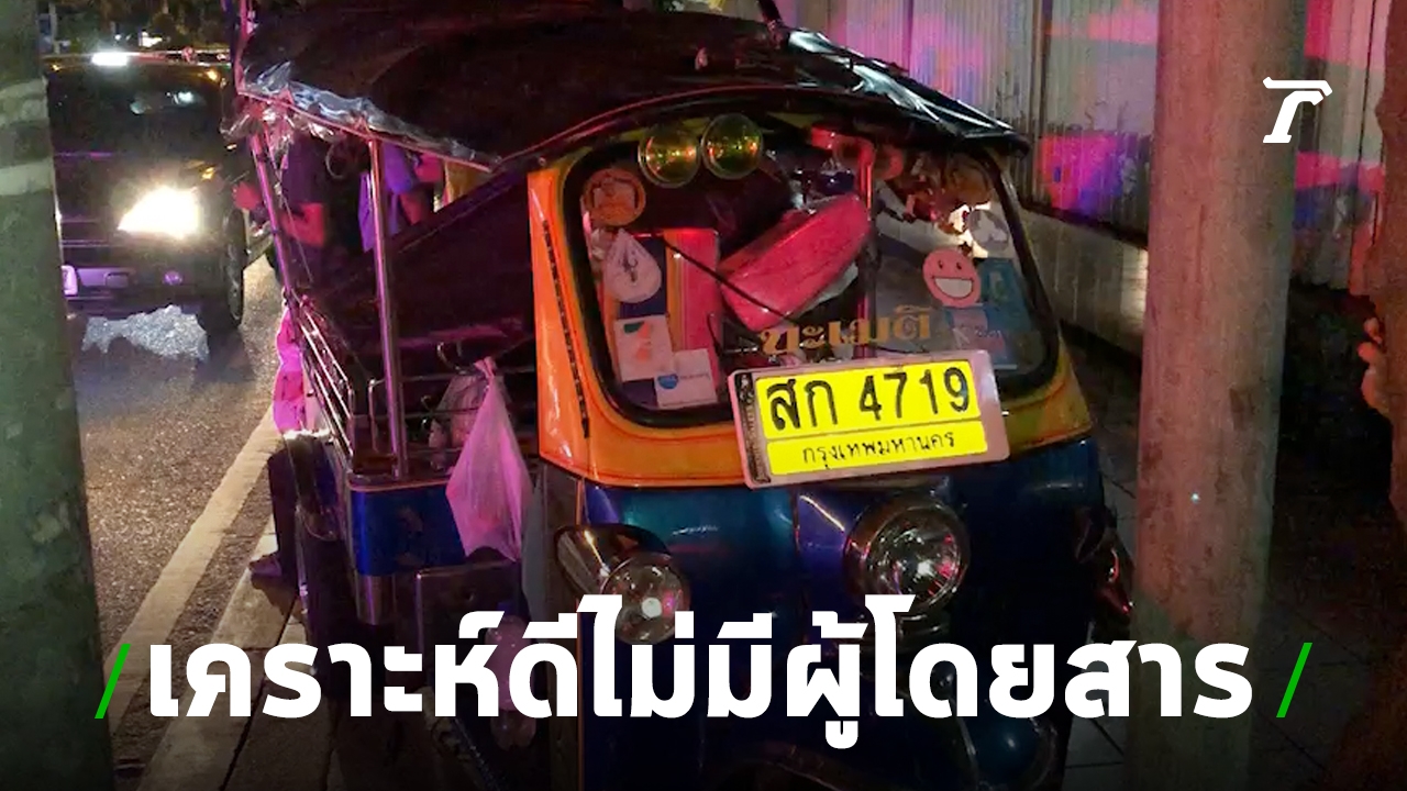 เบื้องต้นทราบว่าก่อนเกิดเหตุ ขณะรถตุ๊กๆ สามล้อ หมายเลขทะเบียน สก 4719 กรุงเทพมหานคร แล่นมาตามถนนพระรามสี่ มุ่งหน้าแยกพระโขนง ได้หักหลบรถเก๋งที่แล่นด้านหน้า ทำให้รถเสียหลักพุ่งชนแผงเหล็กกั้นกลางถนนอย่างรุนแรง เคราะห์ดีที่ไม่มีผู้โดยสาร ขณะที่โชเฟอร์รถตุ๊กๆ ได้กระเด็นออกจากรถ ลงมาบนพื้นถนนศีรษะฟาดกับเกาะกลางถนนได้รับบาดเจ็บ เนื่องจากไม่มีเข็มขัดนิรภัย