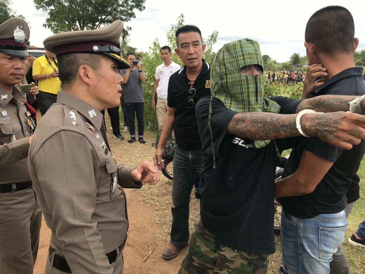 จากกรณีเมื่อวานนี้ ชาวบ้านพบศพ นายเสกสันต์ หรือ "เข้ ท่าแจง" รูปสม อายุ 39 ปี และ นายธวัชชัย หรือ จิว รักษากุล อายุ 20 ปี ถูกยิงด้วยอาวุธปืนนอนตายบนถนนเลียบคลองส่งน้ำ โครงการส่งน้ำด้วยไฟฟ้าบ้านท่าแจง หมู่ 6 ต.หนองกุ่ม อ.บ่อพลอย จ.กาญจนบุรี ล่าสุดเวลา 13.30 น. วันที่ 22 ก.ค.62 พ.ต.อ.ภัทรชัย กอสนาน ผกก.สส.ภ.จว.กาญจนบุรี นำกำลัง ตร.สืบสวนจังหวัด สนธิกำลังกับ พ.ต.อ.สมเกียรติ เพ็ญศิริสมบูรณ์ ผกก.สภ.บ่อพลอย พร้อม พ.ต.ท.เกียรติพงษ์ รอง ผกก.สส.สภ.บ่อพลอย พ.ต.ท.อุทัย อินทรักษ์ สว.สส.สภ.บ่อพลอย ตร.สืบสวน สภ.บ่อพลอย