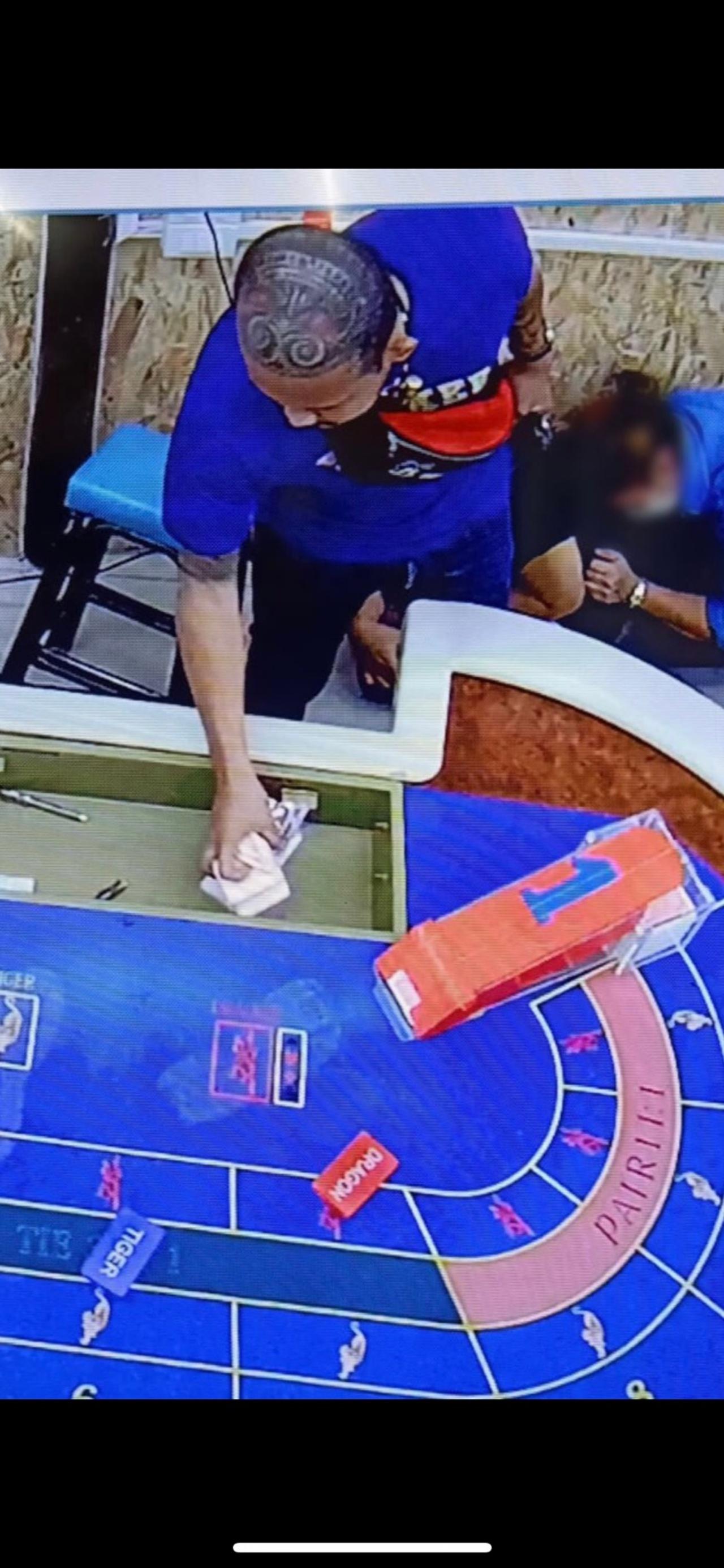 จากภาพเหตุการณ์ที่มีชายมีรอยสักเต็มตัวพร้อมพวก ใช้อาวุธปืนบุกปล้นบ่อนพนันไฮโลขนาดใหญ่ของเฮีย ต. ย่านสะพานใหม่ และได้เงินไปจำนวนมาก