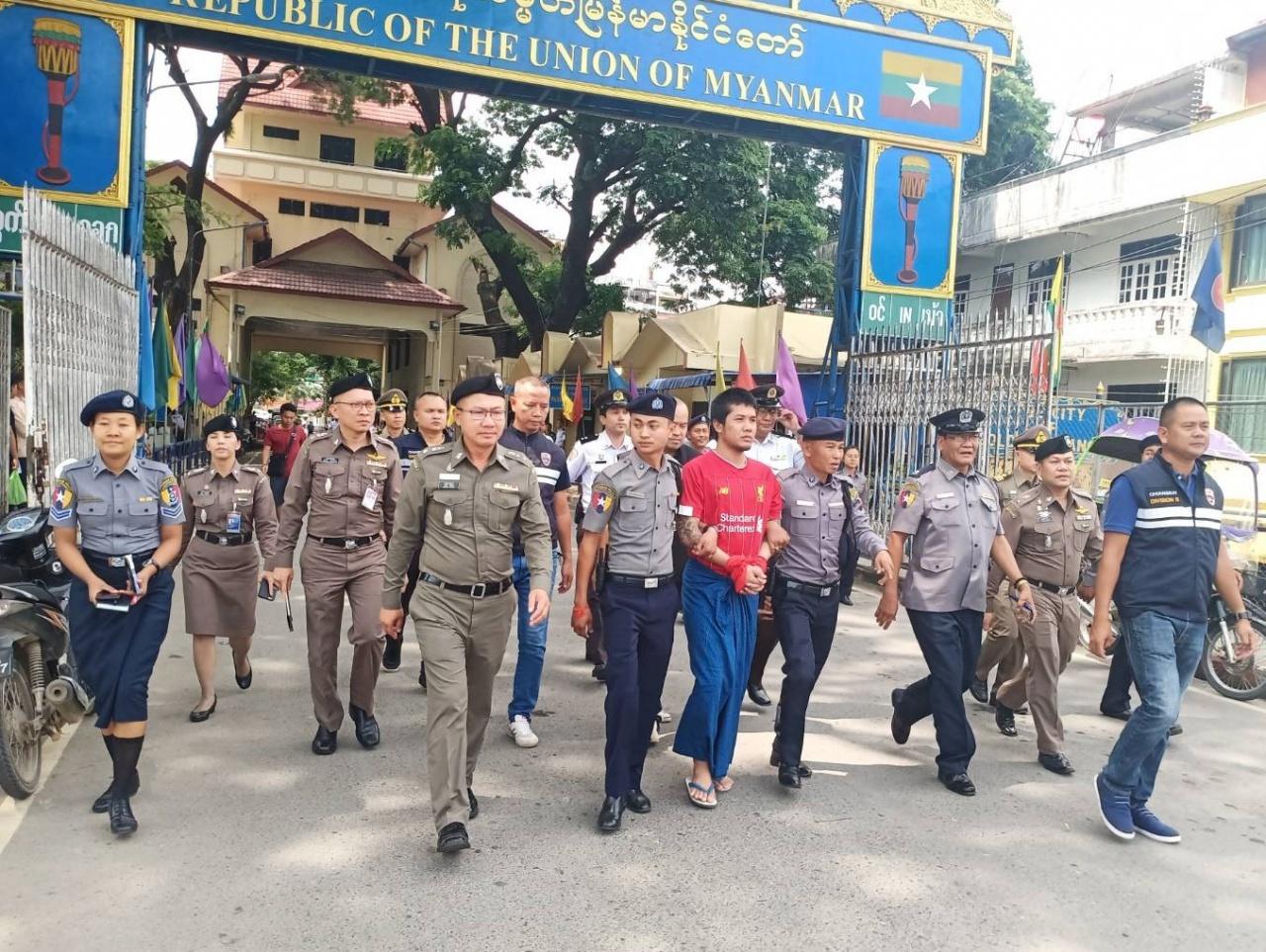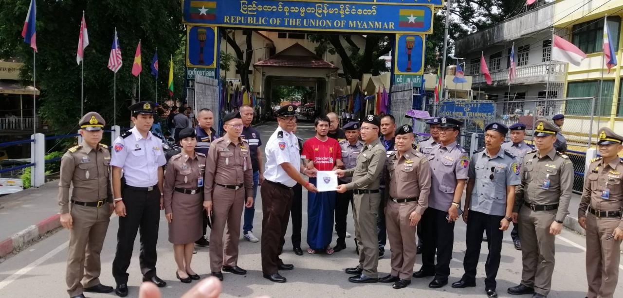ตำรวจ ตม.ภาค 5 ไปรับตัว กล้วย รองหัวหน้าแก๊งมันทุกเม็ด กลางสะพานข้ามด่านพรมแดน อ.แม่สาย หลังหนีหมายจับคดียาเสพติด 3 คดี แล้วพ้นโทษคดีขับรถแหกด่านเมียนมา มาดำเนินคดีตามกฎหมายต่อในฝั่งไทย