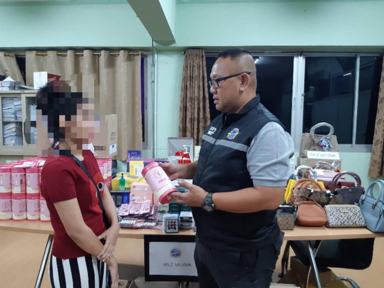 บก.ปอศ.แถลงจับกุม แม่ค้าออนไลน์ จำหน่าย ผลิตภัณฑ์อาหารเสริมและเครื่องสำอางนำเข้าจากต่างประเทศ บุกค้นพบสินค้าลักลอบนำเข้า เลี่ยงภาษี และไม่มี อย. มูลค่าหลายแสนบาท จึงส่งตัวดำเนินคดีต่อไป
