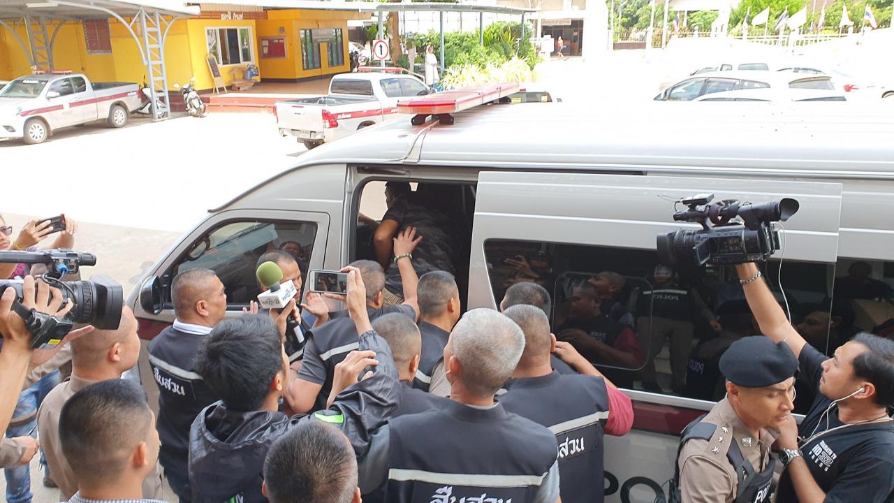 ส่วนที่หน้า สภ.เมืองเลย ญาติที่ทราบข่าวว่า ผู้ต้องหาทั้งสองคนเข้ามอบตัวได้เดินทางมากว่า 30 คน มีญาติผู้ตายกว่า 30 คน ถือป้ายด่าทอและประจานการทำงานของกรมการปกครองอำเภอเมืองเลย ว่าฆ่าคนบริสุทธิ์ ยิงทิ้ง จับใส่กุญแจมือและกระทืบซ้ำจนเสียชีวิต จนเวลาผ่านไปร่วม 2 ชม. ผกก.สภ.เมืองเลย พร้อมชุดสืบสวน ได้พาผู้ต้องหาทั้ง 2 คนมาทางบันไดหน้า สภ.เมืองเลย โดยมีรถตู้และรถกระบะของ สภ.เมืองเลย รอรับ มีตำรวจควบคุมตัวไว้นำขึ้นรถ เมื่อญาติผู้ตายเห็นพยายามเข้ารุมประชาทัณฑ์และด่าทออย่างรุนแรง ตำรวจต้องคอยดันและห้ามญาติ จนนำตัวขึ้นรถขับออกไป โดยผู้ต้องหามีสีหน้าซีดและวิตกกังวล เพื่อส่งฝากขังที่ศาลจังหวัดเลย ส่วนนายอำเภอได้หลบหนีสื่อออกทางด้านหลังขึ้นรถกระบะของกรมการปกครอง อ.เมือง ขับออกไปอย่างรวดเร็ว