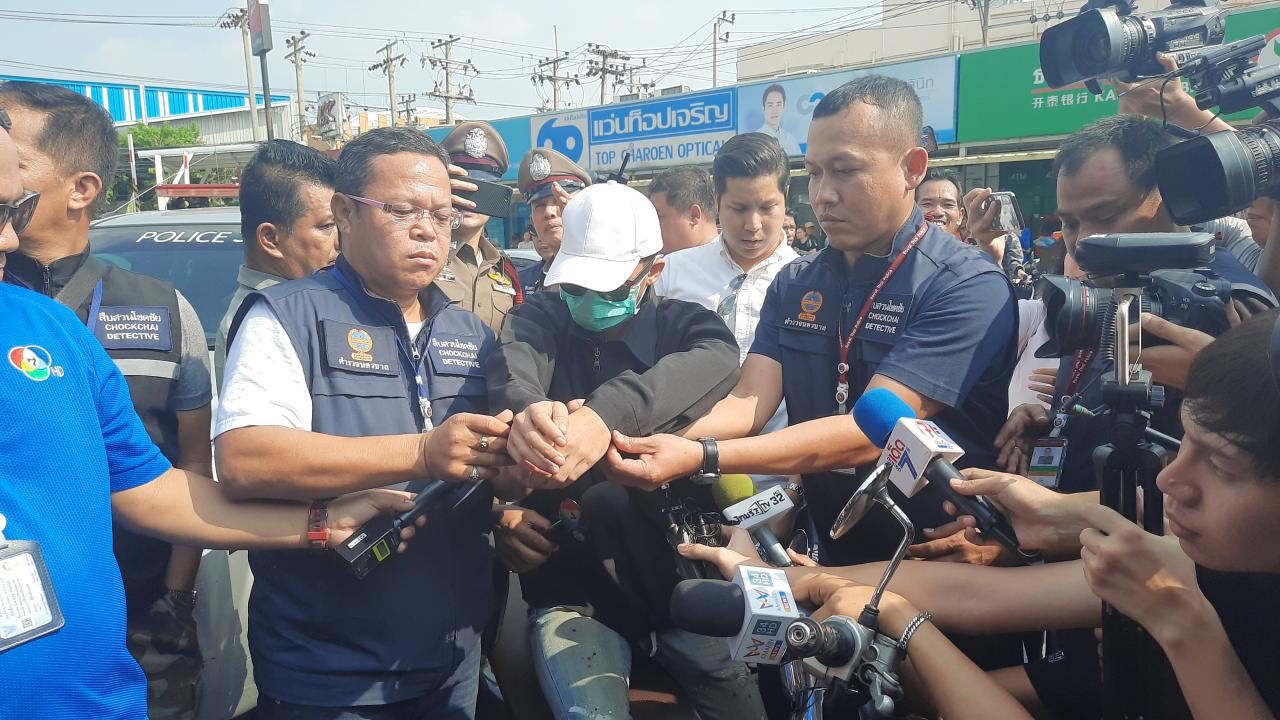 ต่อมาเวลา 13.00 น. พล.ต.ท.ภัคพงศ์ พงษ์เภตรา ผบช.น. เดินทางมาที่สน.โชคชัย แถลงการจับกุมผู้ต้องหา ภายหลังแถลงเสร็จสิ้น น.ส.พรธิรัตน์ พชรบุณยเกียรติ เจ้าของร้านทองเยาวราชเอเชีย นำกระเช้ามอบให้พล.ต.ท.ธีระพงศ์ เพื่อขอบคุณเจ้าหน้าที่ตำรวจที่ติดตามคนร้ายภายใน 3 วัน ก่อนนำตัวไปทำแผนประกอบคำรับสารภาพที่เกิดเหตุ ผู้ต้องหาสวมหน้ากากอนามัยปิดบังใบหน้าและสวมหมวกแก๊ป ภายในร้านทอง ผู้ต้องหาขอดูสร้อยคอทองคำหนัก 5 บาท 4 เส้น แล้วขอถ่ายรูปสร้อยเพื่อส่งให้เพื่อนดู ขณะพนักงานไม่ทันตั้งตัว จึงหลบหนีออกจากประตูแต่ไม่ได้ เอาไปคืนพนักงานแล้วบอกว่า ล้อเล่น จากนั้นมีลูกค้าจะออกจากร้านพนักงานเปิดประตูอัตโนมัติให้ผู้ต้องหาจึงปีนตู้ทองข้ามไปกวาดทอง ที่โชว์ไว้ข้างหลัง 6 เส้น น้ำหนักรวม 24 บาท หลบหนีออกจากประตูวิ่งไปขึ้นรถจยย.หลบหนี