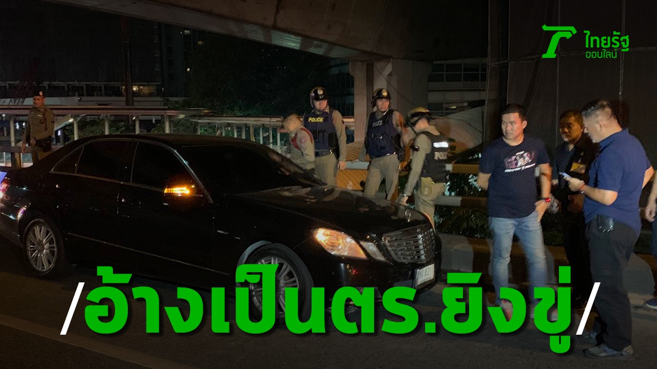 ชายหนุ่มขับรถเบนซ์จอดเสียบนสะพานไทย-ญี่ปุ่น ชักปืนยิงขู่คู่กรณีเก๋งชน จยย.ไม่ให้ทะเลาะกัน และยิงขู่ จนท.กู้ภัยที่จะช่วยคนเจ็บ ก่อนที่จะมีรถอีกคันมารับไป ตรวจรถเจอบัตรตำรวจภูธร ยศ พ.ต.อ.