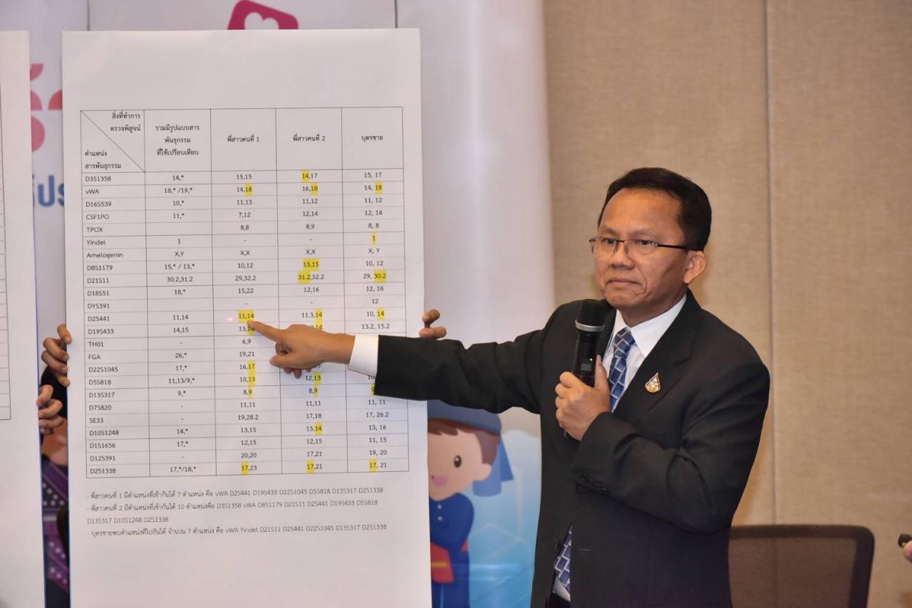 "ทั้งนี้ปกติดีเอ็นเอจะมีการจับคู่โครโมโซม 23 คู่ ซึ่งโครโซม ผู้ต้องสงสัยจากกางเกง น.ส.โทโมโกะ มีสมบูรณ์เพียง 3 คู่ มีโครโมโซมครึ่งเดียว 14 คู่ หายไป 6 คู่ เจ้าหน้าที่จึงนำไปเปรียบเทียบกับโครโมโซมพี่สาวและลูกชายผู้ต้องสงสัย โดยนาง ก.พบโครโมโซมตรง 7 คู่ นางข.ก. พบโครโมโซมตรง 10 คู่ และบุตรชาย พบโครโมโซมตรง 7 คู่ หลังจากนี้สถาบันตินิวิทยาศาสตร์จะตรวจหาสารพันธุกรรมแบบอื่นๆ ต่อไป โดยใช้เวลาประมาณ 1 เดือนครึ่งจะทราบผล และทางกระทรวงยุติธรรมจะรายงานให้ประชาชนทราบต่อไป" นายสมศักดิ์ กล่าว