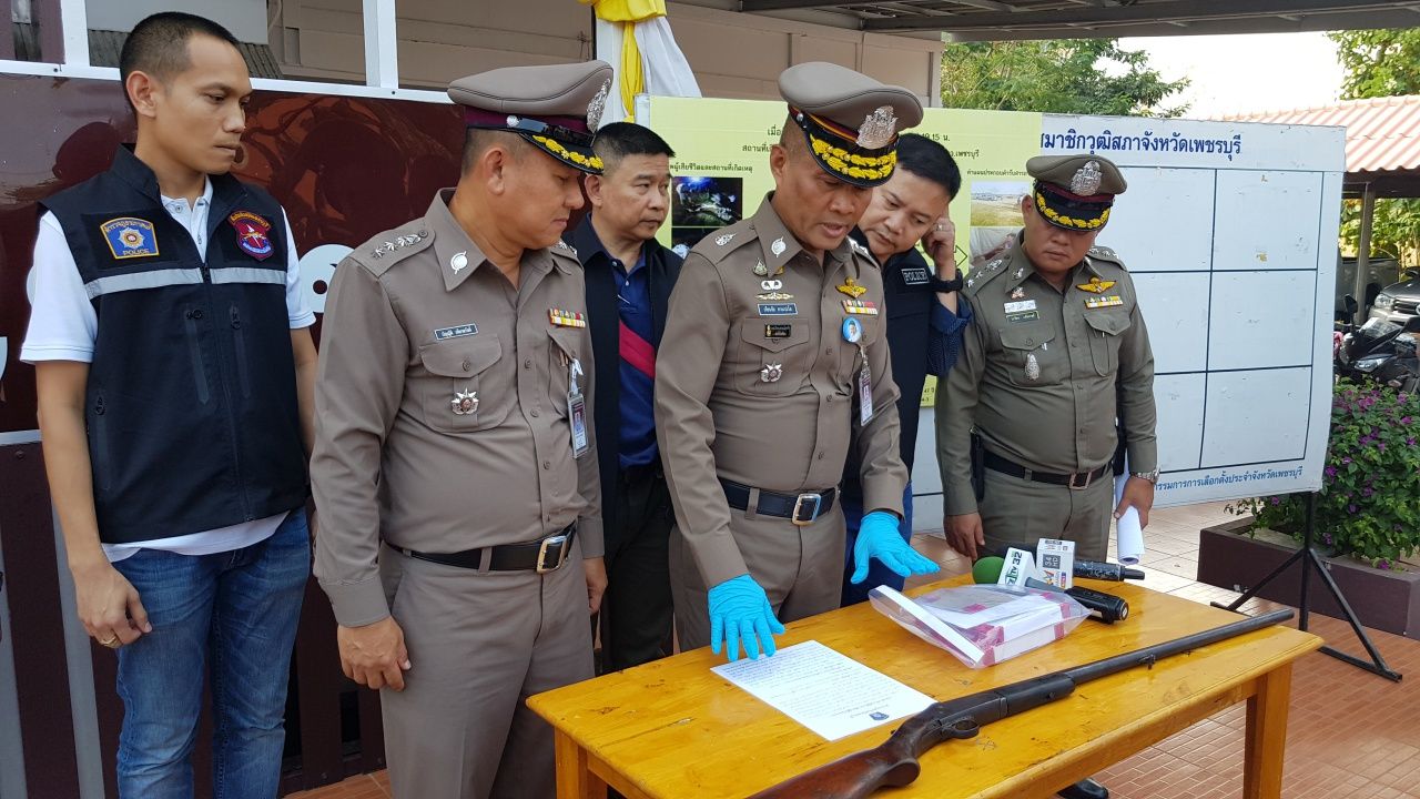 หนุ่มใหญ่วัย 48 ปี พี่เขยปืนโหด หอบปืนลูกซองยาวทูตมรณะเข้ามอบตัวกับ ตร.หลังก่อเหตุยิงน้องเมียดับหน้าบ้านที่ อ.เขาย้อย จ.เพชรบุรี อ้างถูกผู้ตายหาเรื่องก่อน ก่อนถูกคุมตัวไปทำแผนประกอบคำรับสารภาพ