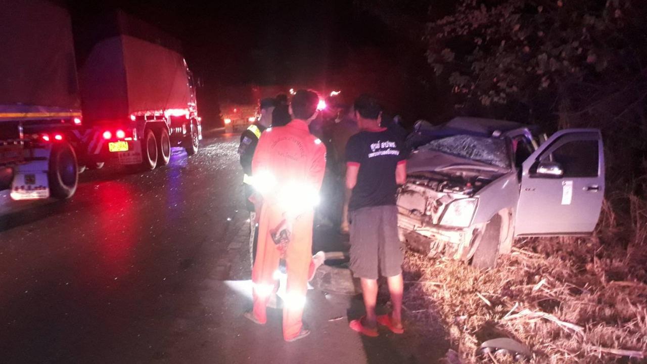 ที่เกิดเหตุพบ รถกระบะโตโยต้า “ไฮลักซ์ วีโก้ ” สีบรอนซ์เงิน หมายเลขทะเบียน ผน 566 ขอนแก่น ชนประสานงากับรถกระบะอีซูซุ ดีแมคซ์ สีบรอนซ์เงิน หมายเลขทะเบียน 8690 เลย อยู่กลางถนน สภาพทั้งสองคันหน้ารถพังยับเยิน พบผู้ได้รับบาดเจ็บสาหัส 4 ราย ติดอยู่ภายในซากรถกระบะอีซูซุ 2 ราย เป็นชายหญิง ไม่ทราบชื่อ กู้ภัยฯนำส่ง รพ.หนองหิน ส่วนรถกระบะโตโยต้า อีก 2 ราย เป็นสองแม่ลูก ทราบชื่อ น.ส.มิตตา งามจันทร์ อายุ 33 ปี และ ด.ญ.นันทนา โคตรวงษา อายุ 8 ขวบ กระเด็นออกนอกตัวรถ กู้ภัยฯ นำส่ง รพ.วังสะพุง ก่อนที่ ด.ญ.นันทนา จะเสียชีวิตในเวลาต่อมา ห่างออกไปพบศพผู้เสียชีวิตกระเด็นออกนอกตัวรถ ทราบชื่อ นายปฐมพงษ โคตรวงษา อายุ 32 ปี อยู่บ้านเลขที่ 46 หมู่ 6 ต.หนองหิน อ.หนองหิน จ.เลย เจ้าหน้าที่นำร่างผู้เสียชีวิตส่งชันสูตรพลิกศพที่ รพ.วังสะพุง