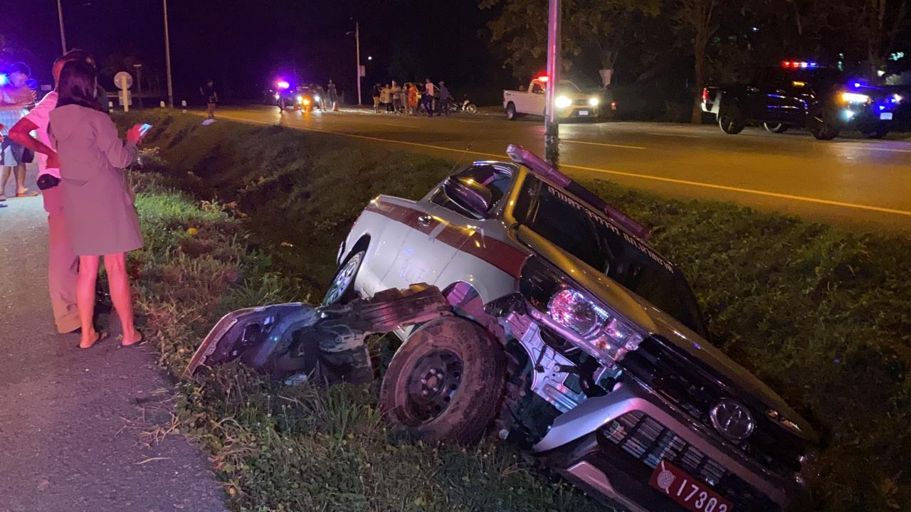 เมื่อเวลา 02.30 น วันที่ 9 ม.ค.63 ร.ต.อ.สุธรรม เปลี่ยวดี ร้อยเวร สภ.นาขยาด จ.พัทลุง รับแจ้งเหตุรถกระบะเสียหลักพุ่งชนรถยนต์สายตรวจ 191 ของ สภ.นาขยาด บนถนนสายเอเชีย ฝั่งขาขึ้น ในท้องที่หมู่ที่ 6 ต.พนมวังค์ อ.ควนขนุน จ.พัทลุง หลังรับแจ้งจึงรุดตรวจสอบพร้อมเจ้าหน้าที่กู้ภัยพัทลุง