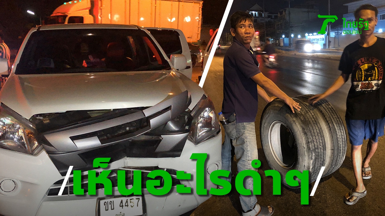 ที่จังหวัดชลบุรีเกิดเหตุสุดระทึก หนุ่มวัย 31 ขับกระบะจะไปบ้านพ่อที่หนองมน จู่ๆล้อรถบรรทุกคู่หลังฝั่งขวาหลุดกระเด็นพุ่งข้ามเลนอัดใส่หน้ารถเต็มแรง โชคดีไม่ได้รับบาดเจ็บ