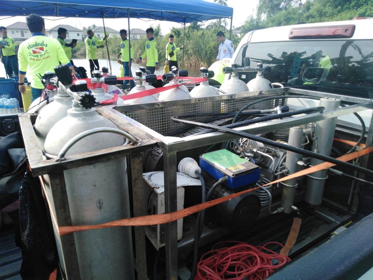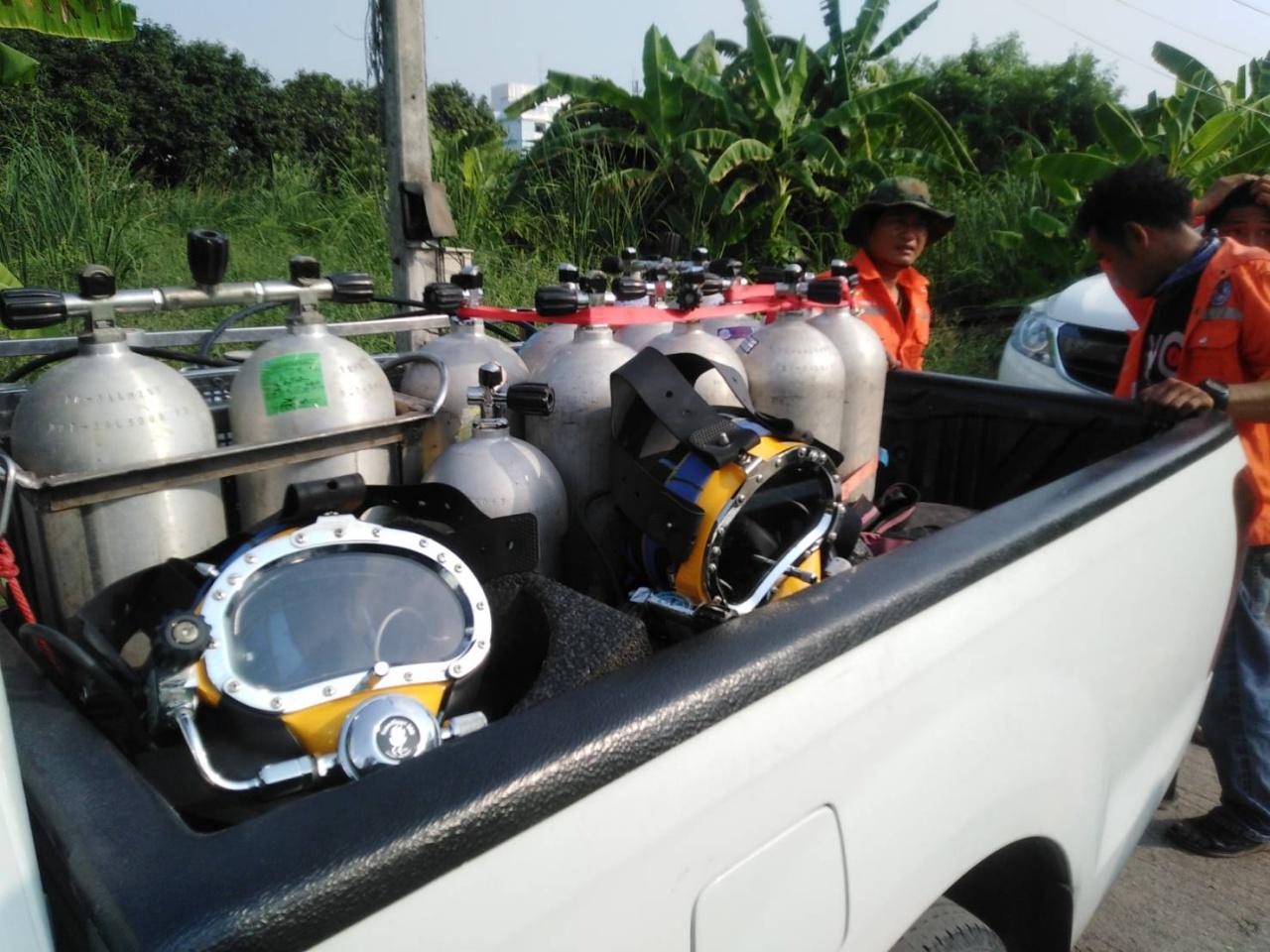 บริเวณหน้างานมีกำลังเจ้าหน้านักประดาน้ำ จากหน่วยกู้ภัยมูลนิธิป่อเต็กตึ๊ง มูลนิธิร่วมกตัญญู และองค์กรภาคเอกชน ซึ่งรับงานดำน้ำลึกบริเวณแท่นขุดเจาะน้ำมัน สนธิกำลังกันกว่า 40 ชีวิต นำอุปกรณ์ดำน้ำมาเตรียมการเอาไว้ รอหมายค้นจากเจ้าหน้าที่ตำรวจ หากมีคำสั่งให้ปฏิบัติการก็จะสามารถลงดำน้ำหาของกลางต่างๆ ในบ่อน้ำได้ทันที