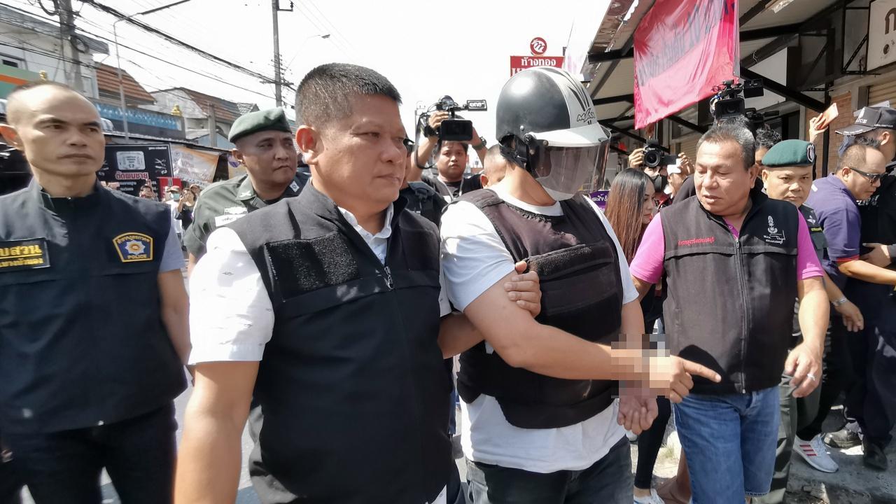 โดยจุดแรกบริเวณที่จอดรถ ผู้ต้องหานำรถเก๋งยี่ห้อฮอนด้า ซีวิค สีดำ หมายเลขทะเบียน ฌก-4393 กทม. ขับมาจอดภายในซอยใกล้กับร้านทอง ห่างไปประมาณ 20 เมตร ก่อนเข้าไปที่ร้านทอง ใช้อาวุธปืนเล็งไปที่คนขายทองภายในร้าน และไปที่จุดกล้องวงจรปิด จะยิงกล้องวงจรปิด แต่ไม่ยิง หลังจากนั้นพอได้ทอง จะวิ่งหลบหนีออกจากร้าน พอมาถึงประตูเปิดไม่ออก เนื่องจากประตูถูกล็อคอัตโนมัติ จึงใช้อาวุธปืนทุบกระจกแต่ไม่แตก จึงใช้อาวุธปืนยิงไปที่ประตูกระจก 1 นัดก็ยังไม่แตก ต้องยิงนัดที่ 2 กระจกถึงแตก จากนั้นรีบวิ่งออกมาจากร้านขับรถหลบหนีไปที่บ้านของภรรยา บ้านเลขที่ 41/224 หมู่บ้านพฤกษา 45 ในพื้นที่ อ.บางใหญ่ จ.นนทบุรี เพื่อเอาทองที่ชิงมาไปเก็บ ก่อนที่จะมาถูกเจ้าหน้าที่ตำรวจจับกุมในที่สุด