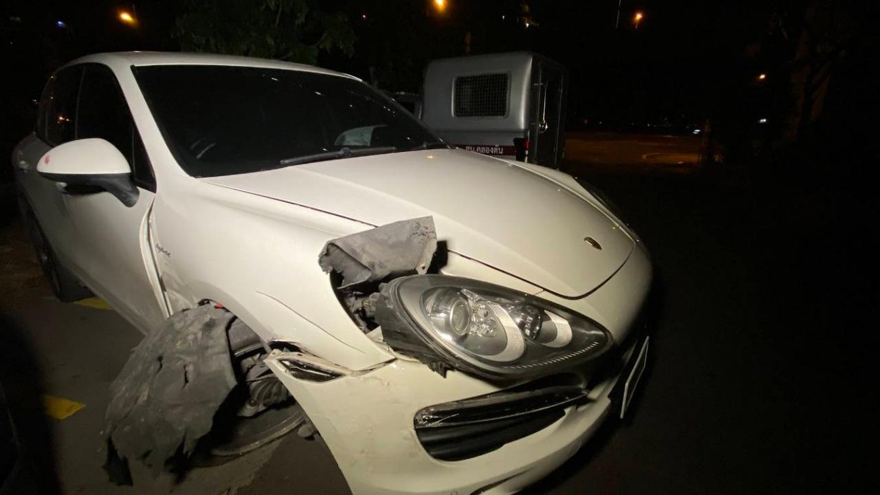 หนุ่มวัย 30 ซิ่งเก๋งพุ่งชน “ปอร์เช่ คาเยนน์” ของพริตตี้สาว “ใบเฟิร์น อิศรา” แอร์แบ็กแตกทั้ง 2 ข้าง กระจกหน้าร้าว เจ้าตัวได้รับบาดเจ็บ กู้ภัยฯนำส่ง รพ.วิภาราม