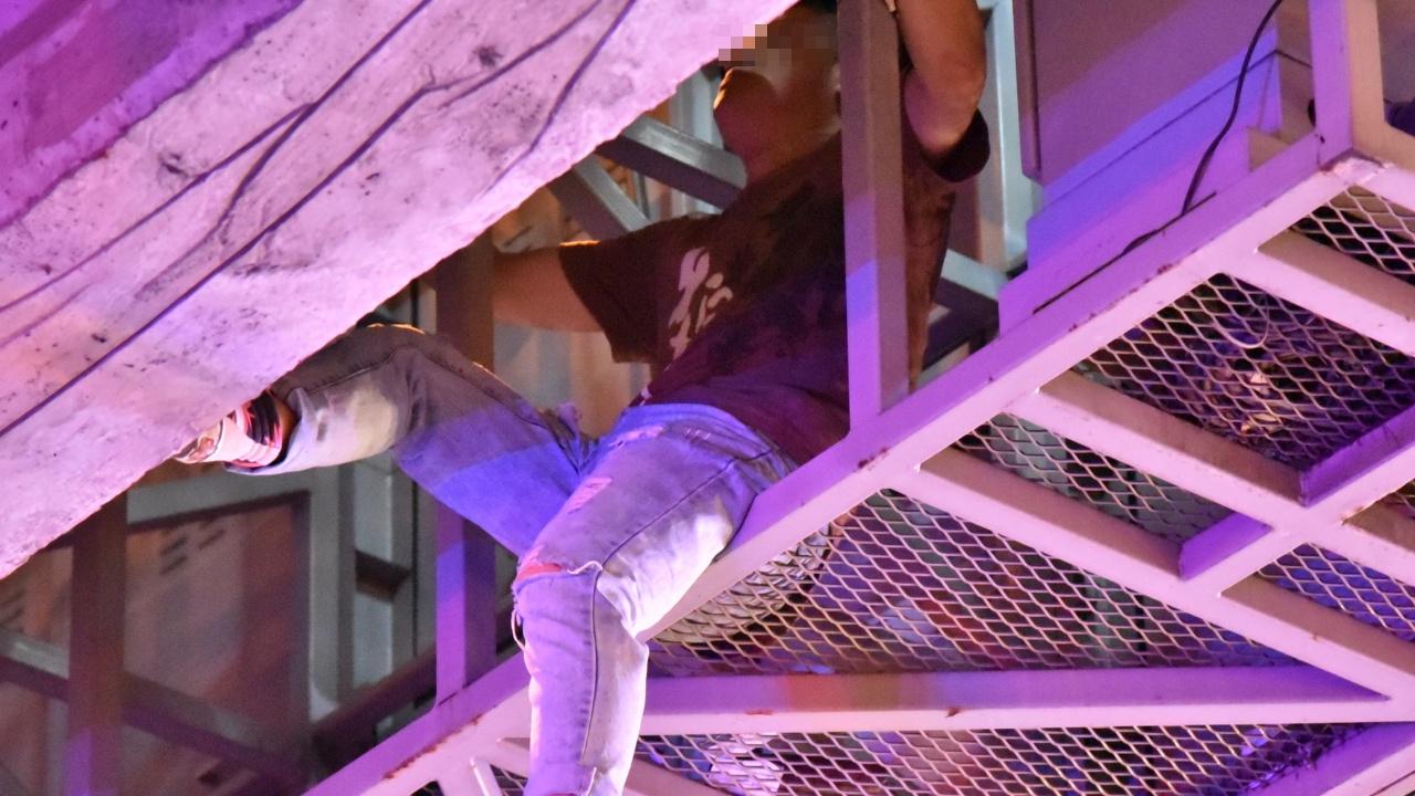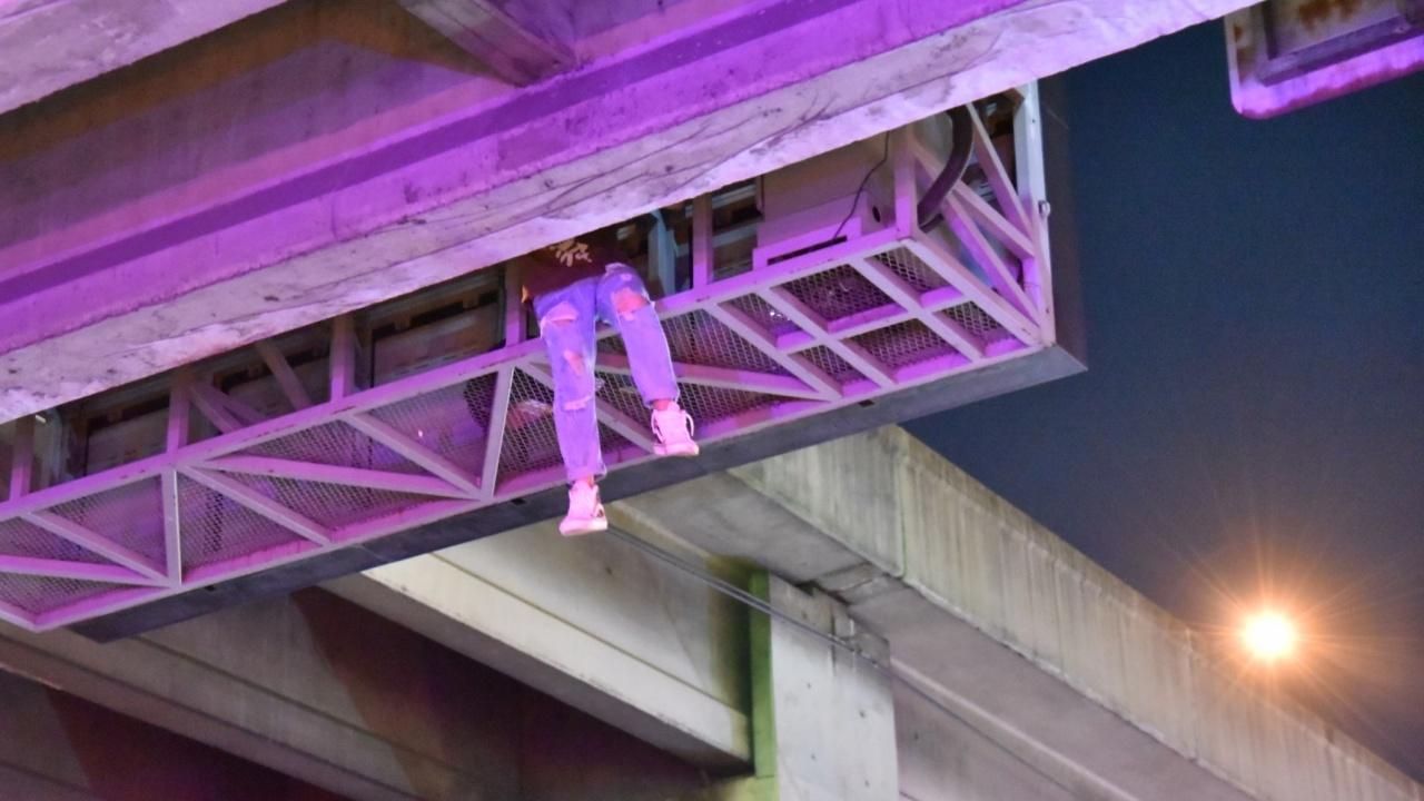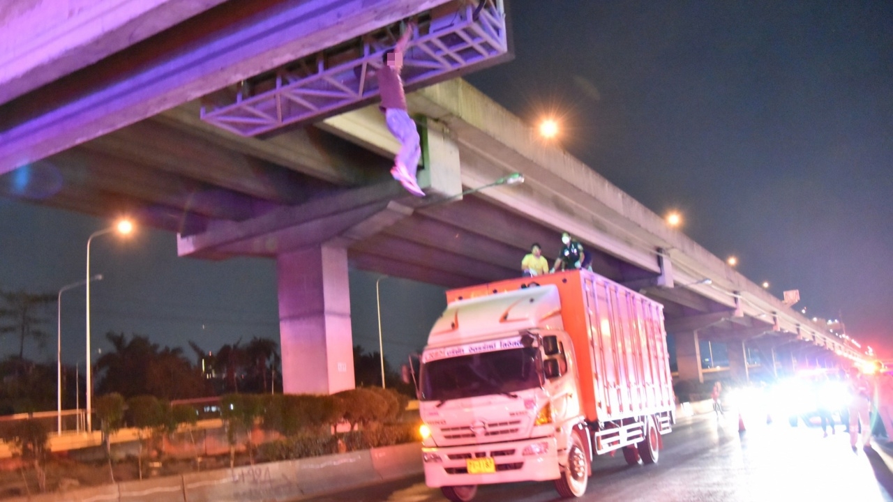 ต่อมาเวลา 21.10 น. ชายดังกล่าวได้กระโดดจากป้ายบอกการจราจร ขณะที่เจ้าหน้าที่กำลังจะใช้รถบรรทุกเข้าชาร์จจากด้านล่าง โดยชายดังกล่าวได้รับบาดเจ็บขาทั้ง 2 ข้างหัก เจ้าหน้าที่ต้องรีบปฐมพยาบาลเบื้องต้นก่อนนำตัวส่ง รพ.ราชวิถี
