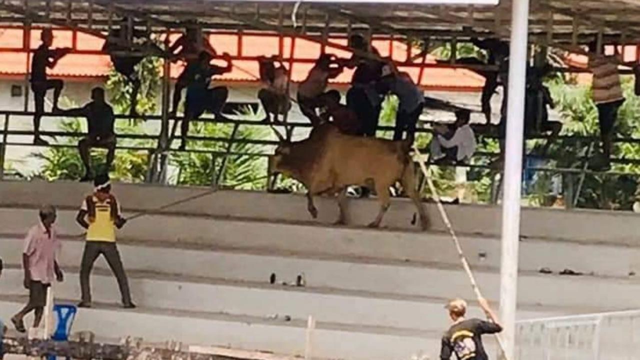 เซียนพนันนับร้อยชีวิต วิ่งหนีตายโกลาหล วัวชนกระโดดออกมาจากสนามแข่งวิ่งขึ้นอัฒจันทร์ สาวใหญ่วัย 57 หนีไม่ทัน ถูกขวิดบาดเจ็บ เดชะบุญไม่มีใครได้รับอันตรายถึงแก่ชีวิต