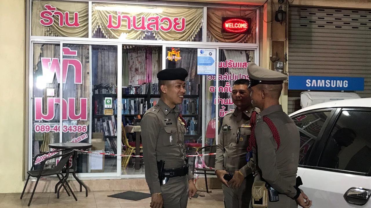 เมื่อเวลา 19.30 น. วันที่ 19 ก.พ.63 พ.ต.อ.ปพนพัชร์ ใบยา ผกก.สภ.บ่อวิน อ.ศรีราชา จ.ชลบุรี ได้รับแจ้งว่ามีคนใช้อาวุธปืนยิงกัน มีผู้เสียชีวิตคาที่ 2 ราย เหตุเกิดภายในร้านม่านสวย เลขที่ 289/12 ม.3 ต.บ่อวิน อ.ศรีราชา จ.ชลบุรี จึงรีบรุดไปตรวจสอบ พร้อมด้วยเจ้าหน้าที่ฝ่ายสืบสวน และเจ้าหน้าที่หน่วยกู้ภัยเพียวเยี้ยงไท้ ศรีราชา