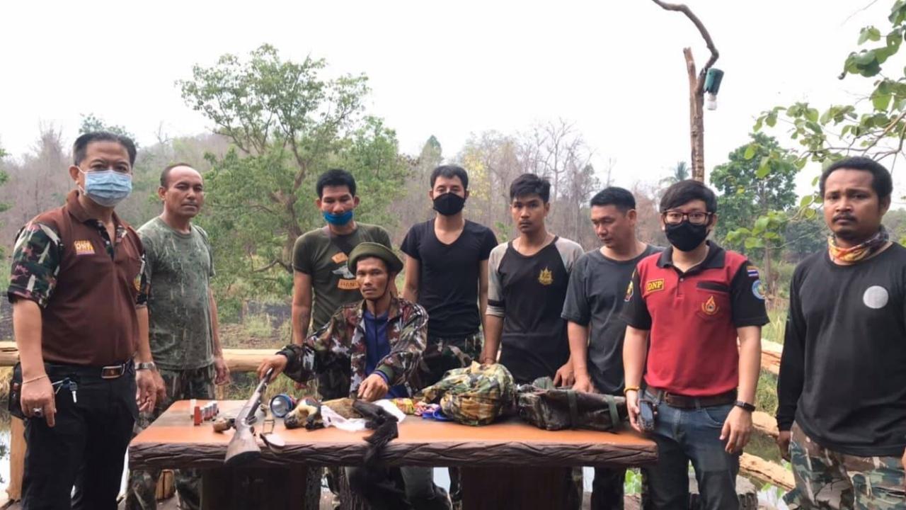 เจ้าหน้าที่สนธิกำลังรวบพรานป่า 1 คน เป็นชาวจังหวัดนครสวรรค์ ลักลอบล่าสัตว์ ในเขตพื้นที่อุทยานแห่งชาติแม่วงก์ พร้อมของกลางซากพญากระรอกดำ อาวุธปืนและเครื่องกระสุน